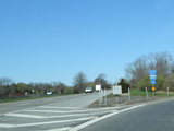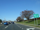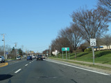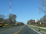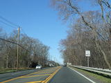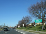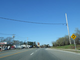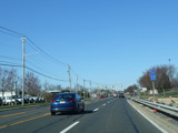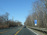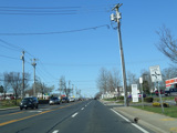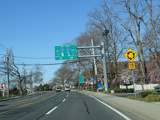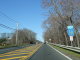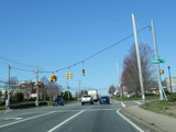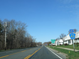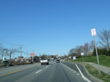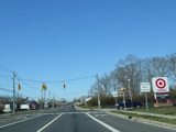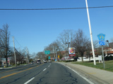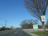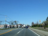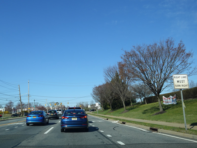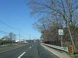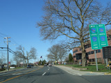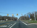 There is a traffic circle at Roanoke Avenue (CR 73). The signage here is technically wrong. CR 73 has its northern terminus here, and the section of Roanoke Avenue north of here is a local street.