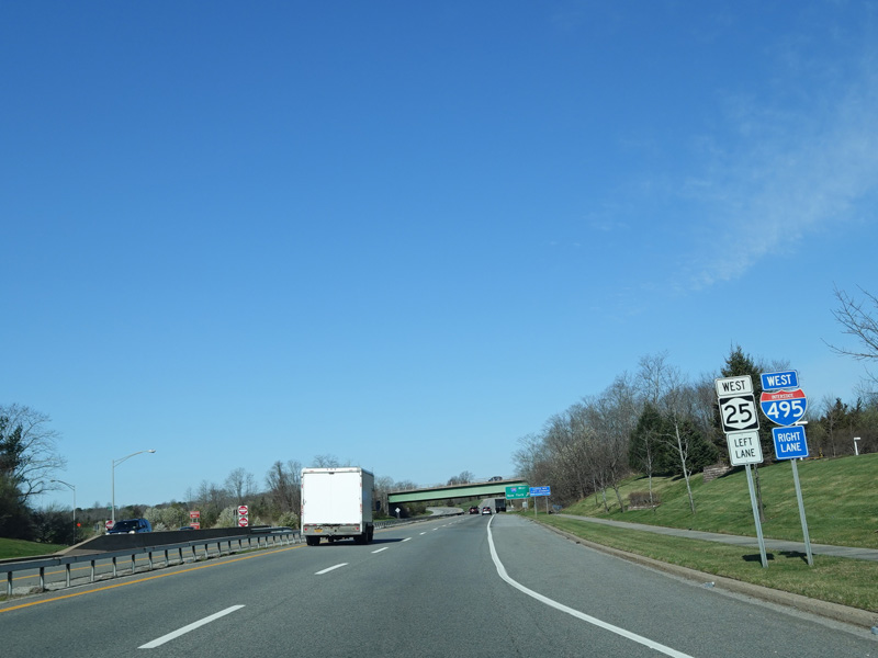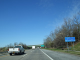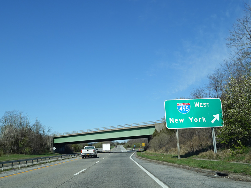 Old Country Road becomes a divided highway. There is an entrance to the Long Island Expressway (I-495), which has its eastern terminus here. Straight ahead, Old Country Road ends and merges into Middle Country Road (NY 25).