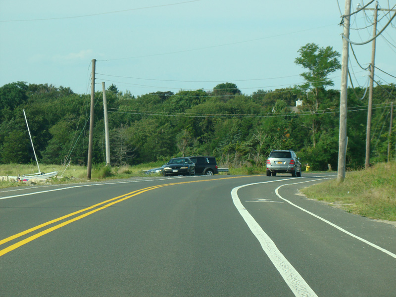 Short Beach Road ends here at South Ferry Road (NY 114). There is a traffic circle. Continue straight ahead to go north or turn right to go south. Tyndall Road is to the left.