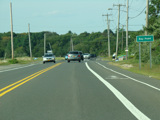 Noyack-Long Beach Road runs north through Bay Point as a two-lane undivided road with traffic lights.