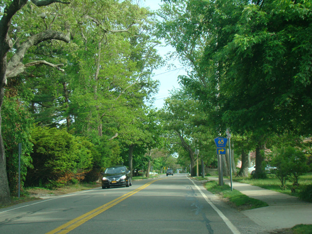 CR 65 is an east/west route from Sayville to Patchogue. It runs south of Montauk Highway (CR 85), through Bayport and Blue Point. For most of its length, it is known as Middle Road. Near the eastern terminus, Middle Road ends at Atlantic Avenue. CR 65 is then routed north along Atlantic Avenue, east along Weeks Street, north along River Avenue, and east along Division Street to end at the southern terminus of CR 19 in Patchogue.