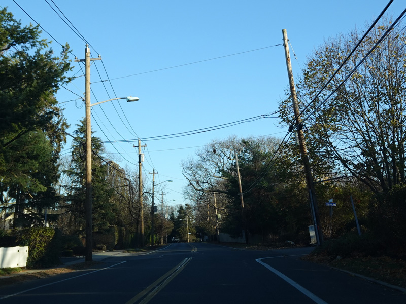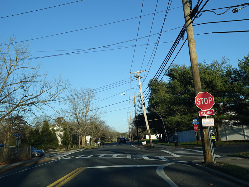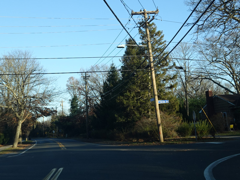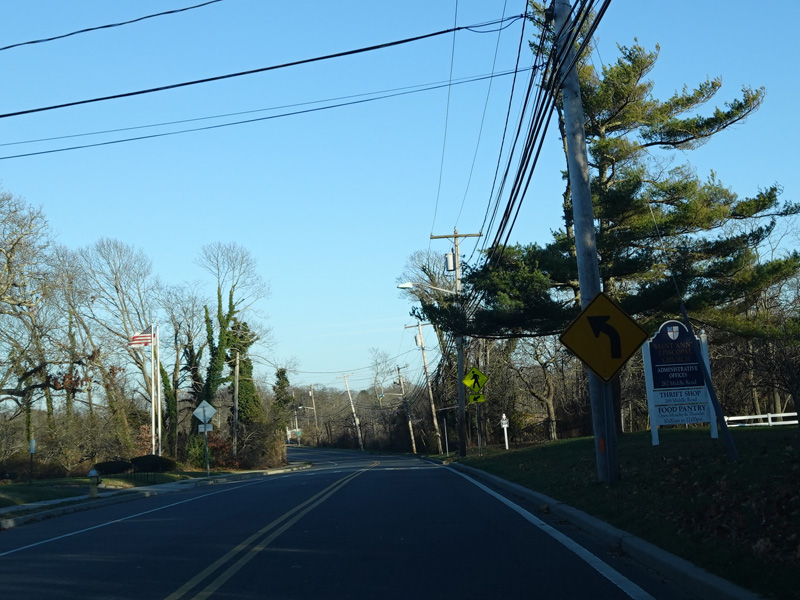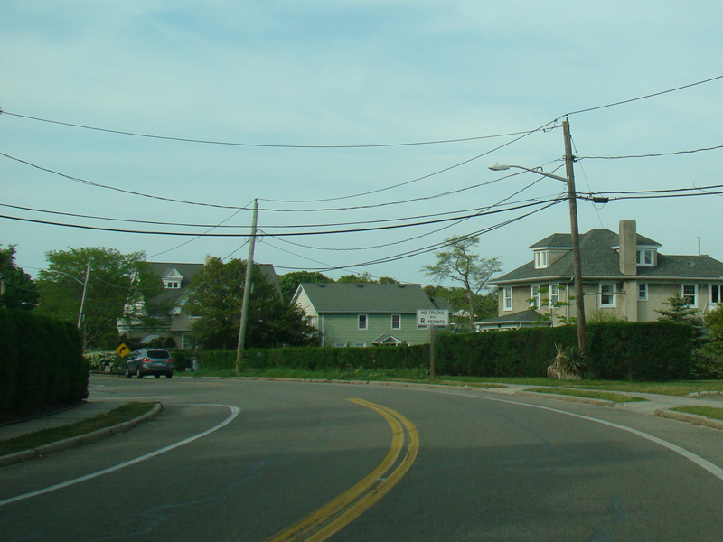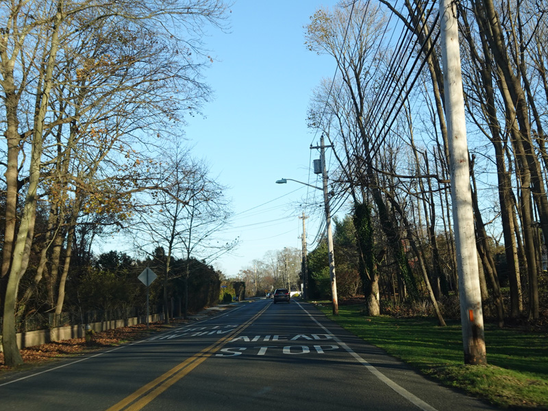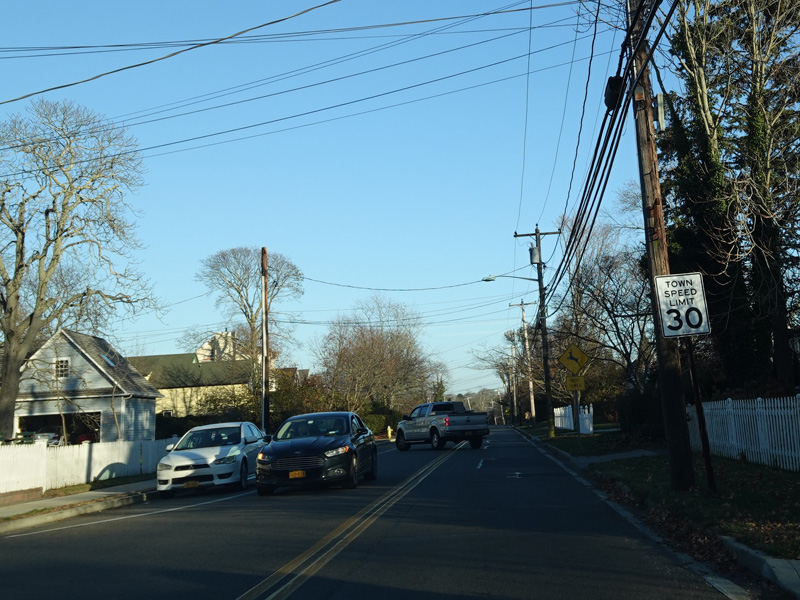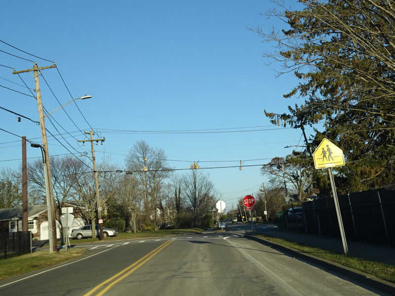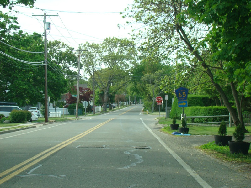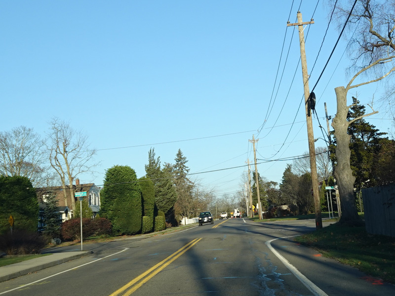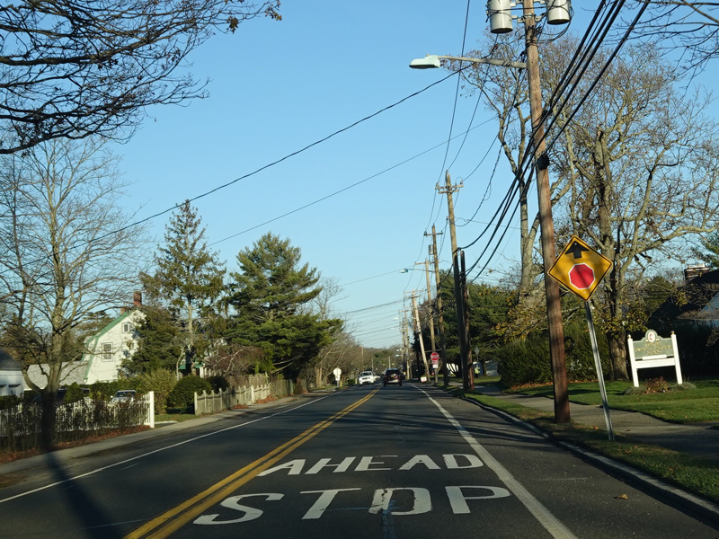 Welcome to Bayport! Middle Road continues to the east. There are a number of stop signs and a couple of flashers along this stretch.