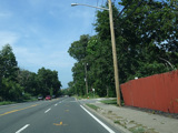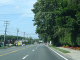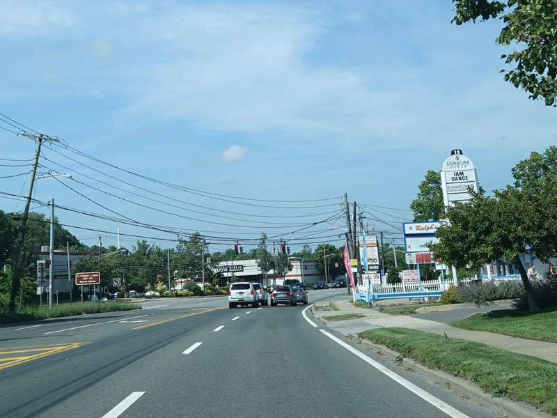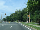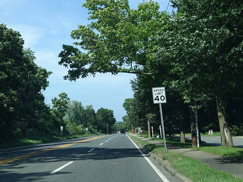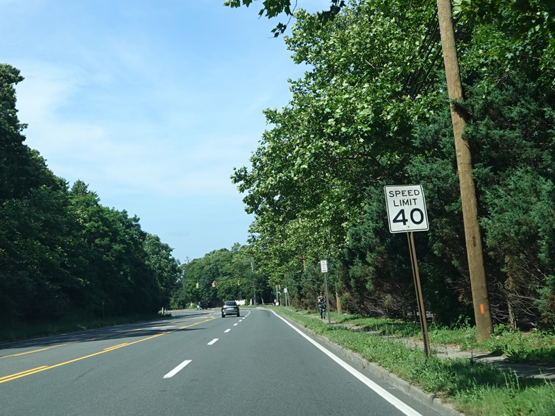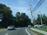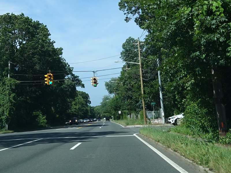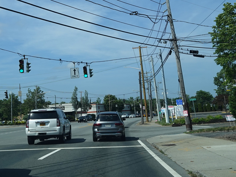 East Deer Park Road ends here at a traffic light at Jericho Turnpike (NY 25). All vehicles must merge in to the east straight ahead.