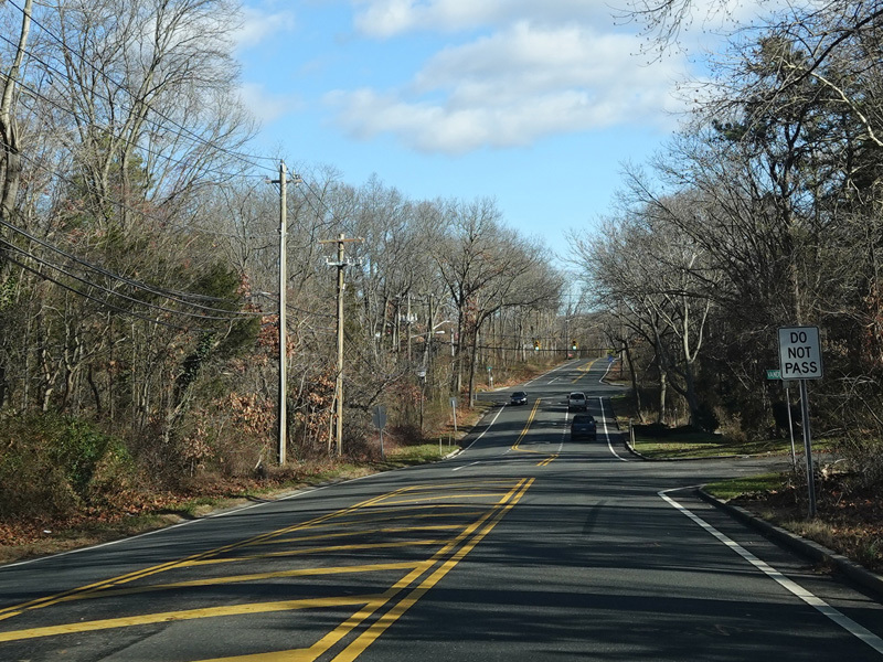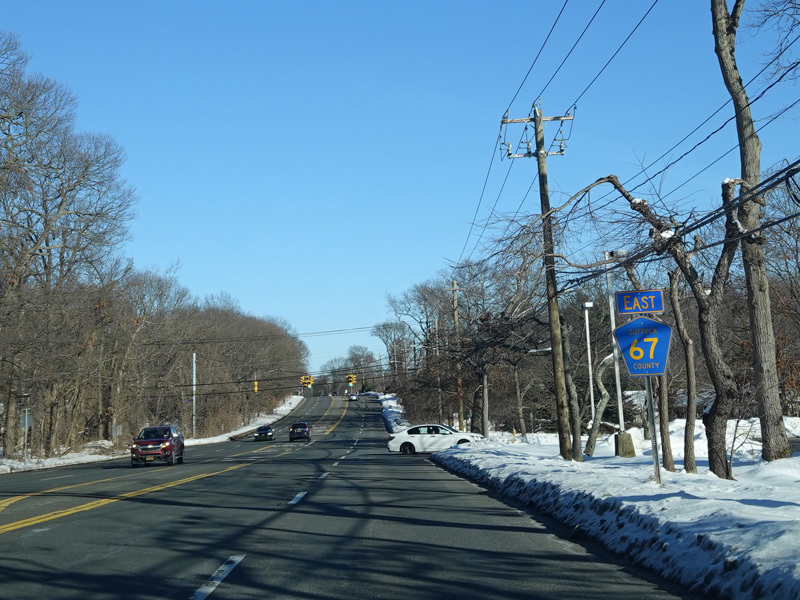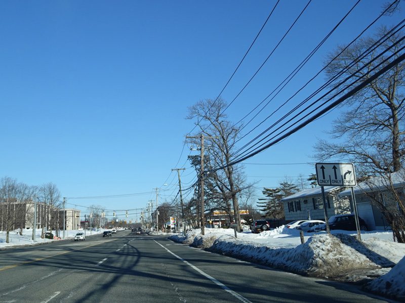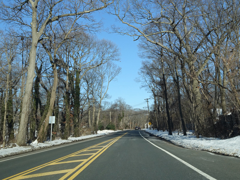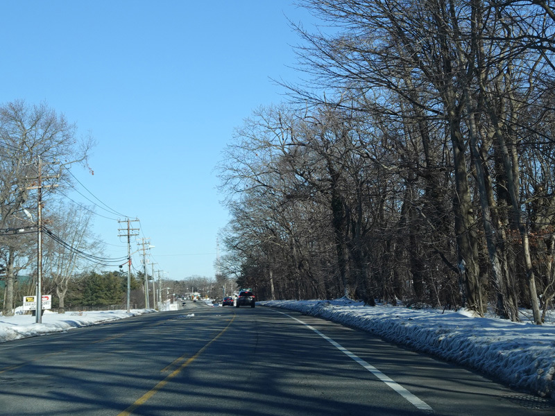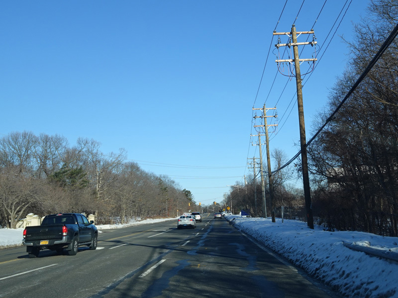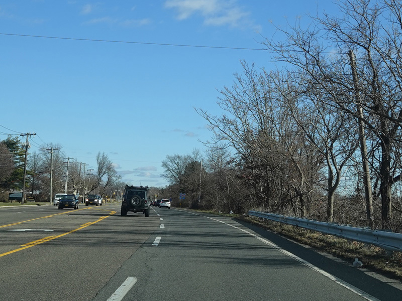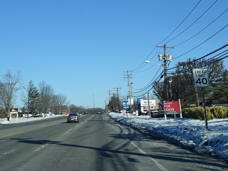 The Motor Parkway narrows down to two lanes and continues east to Ronkonkoma.