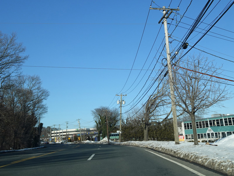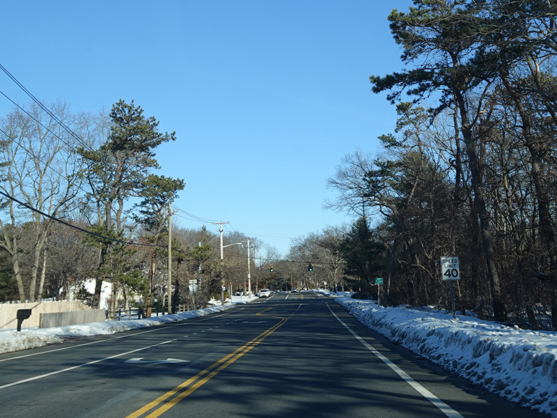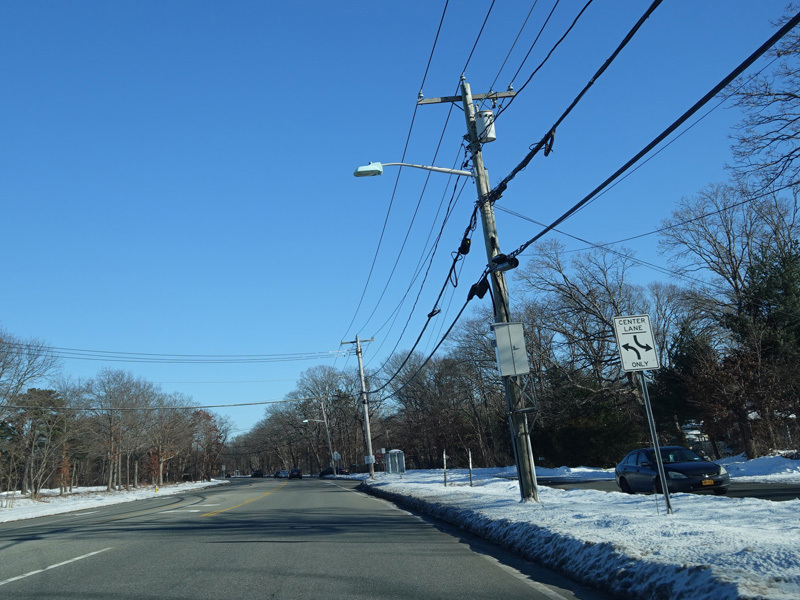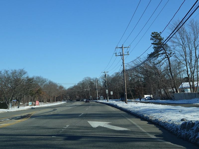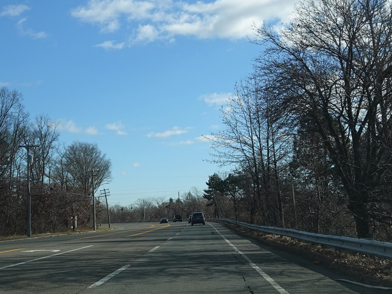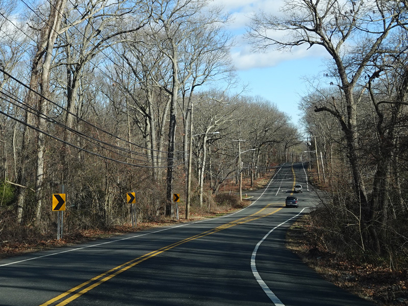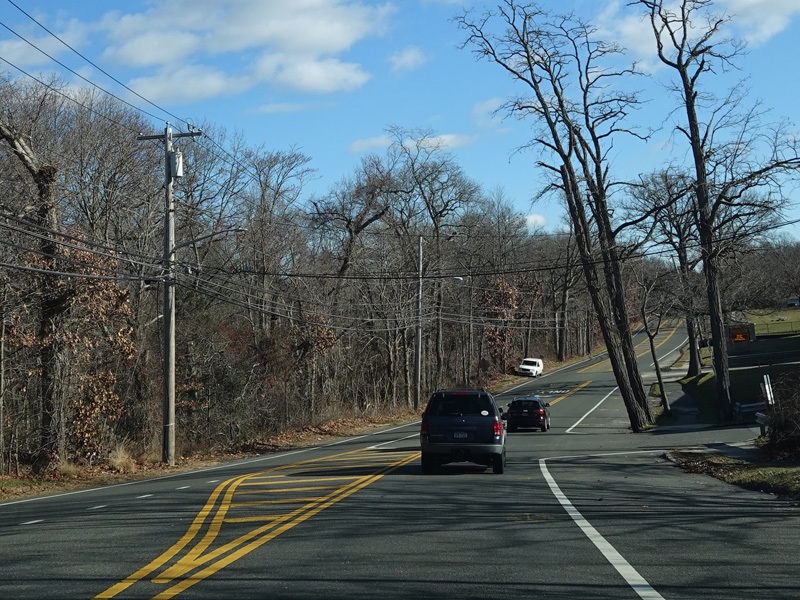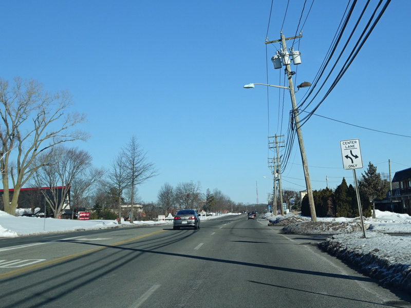 The Motor Parkway narrows down to two lanes and continues east to Ronkonkoma.