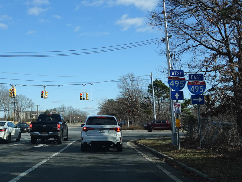 There is a westbound entrance to the Long Island Expressway (I-495) on the right at this traffic light.