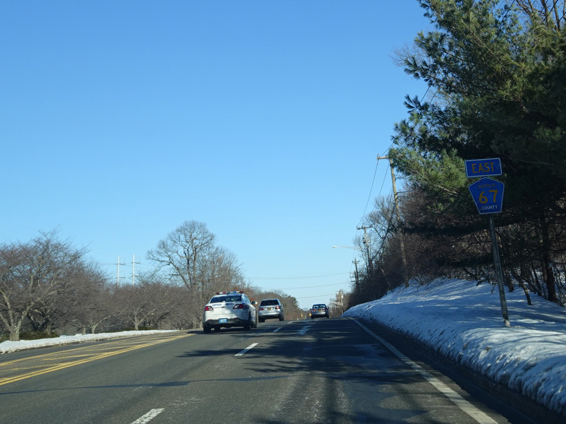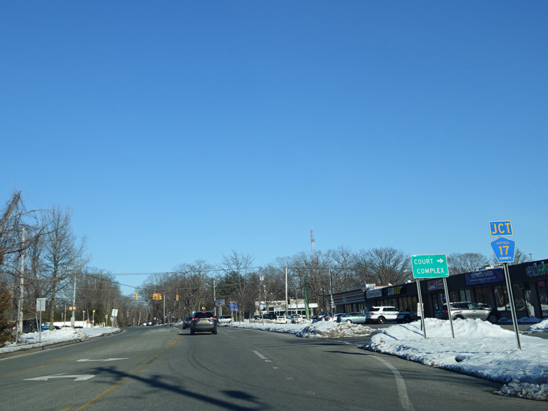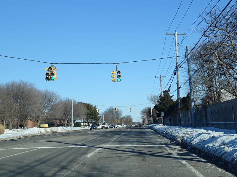 The Motor Parkways ends at a traffic light at Rosevale Avenue (CR 93). Turn left to go north or right to go south. County signage is completely lacking at this intersection.