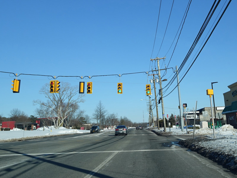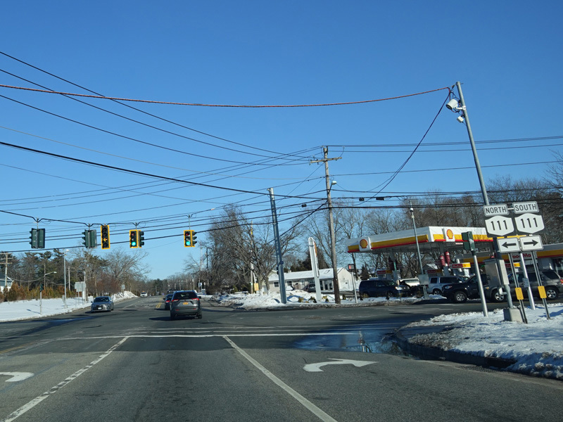 There is a traffic light at Joshua's Path (NY 111). Turn left to go north or right to go south.
