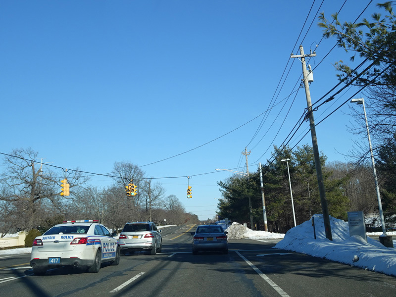 There is a traffic light at Commack Road (CR 4). Turn left to go north or right to go south. Turn left for access to the Northern Parkway west. Turn right for access to Crooked Hill Road (CR 13).