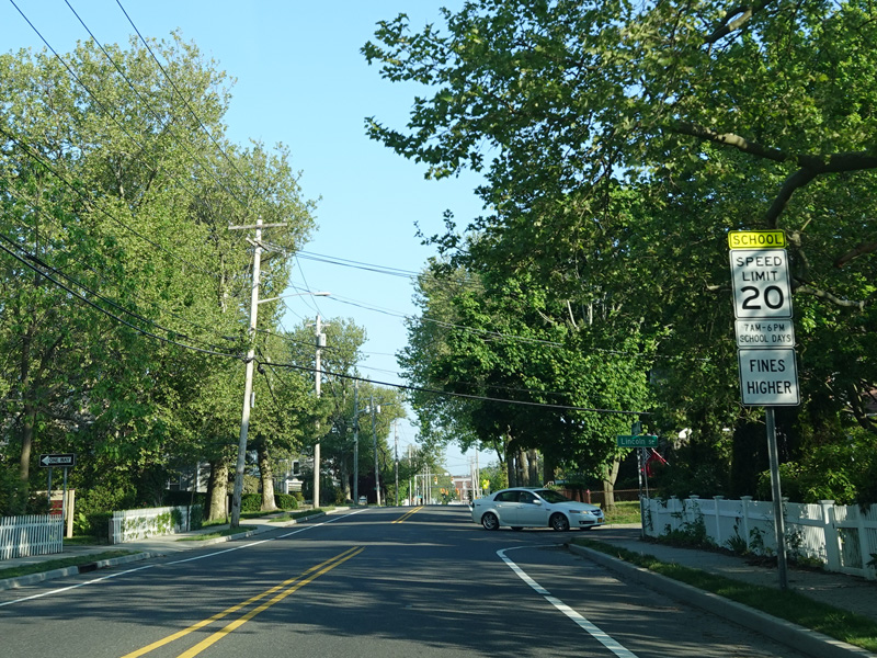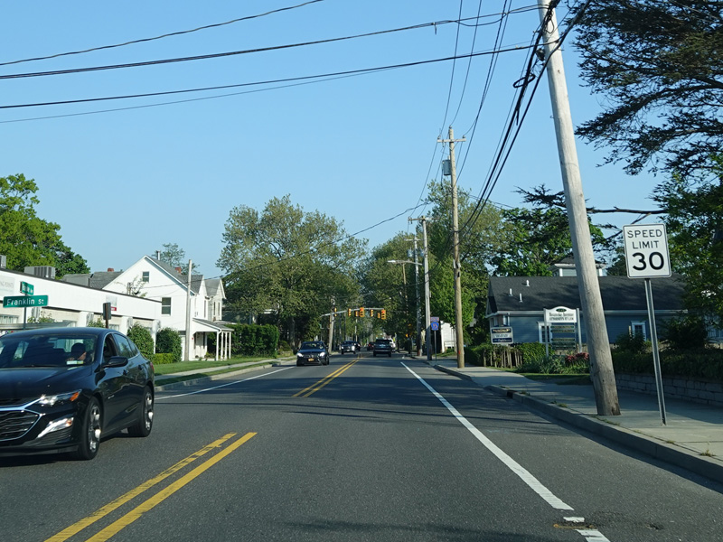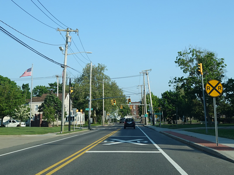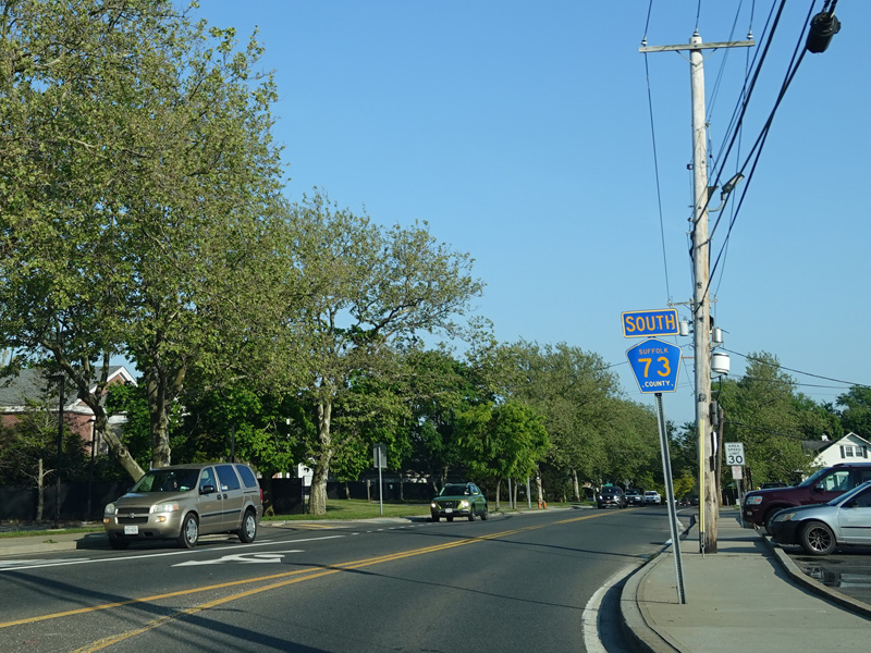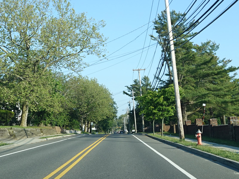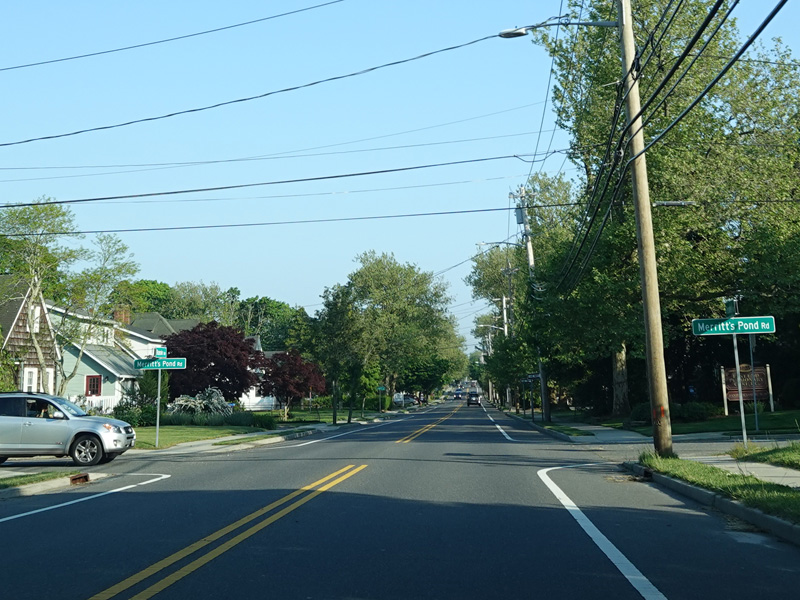 Roanoke Avenue becomes a county route coming out of the traffic circle on Old Country Road (CR 58) in Riverhead and runs south as a two-lane undivided road.
