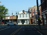 Roanoke Avenue ends at a traffic light at Main Street (NY 25). All vehicles must to right to go west. There is no route signage at this intersection.