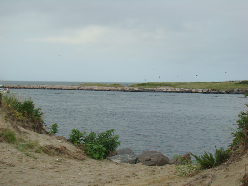These pictures show Block Island Sound and Lake Montauk as observed from the parking lot at Montauk Harbor.