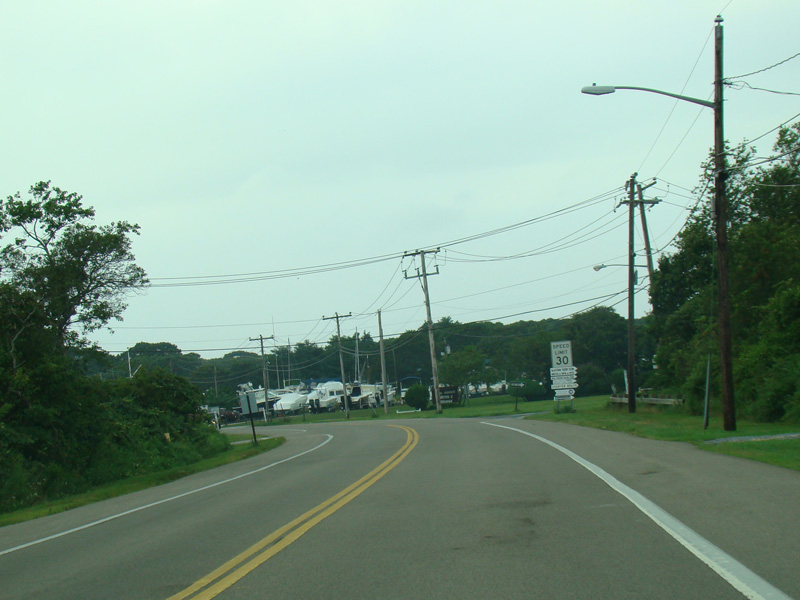 West Lake Drive continues north for a short distance. Block Island Sound is to the left.