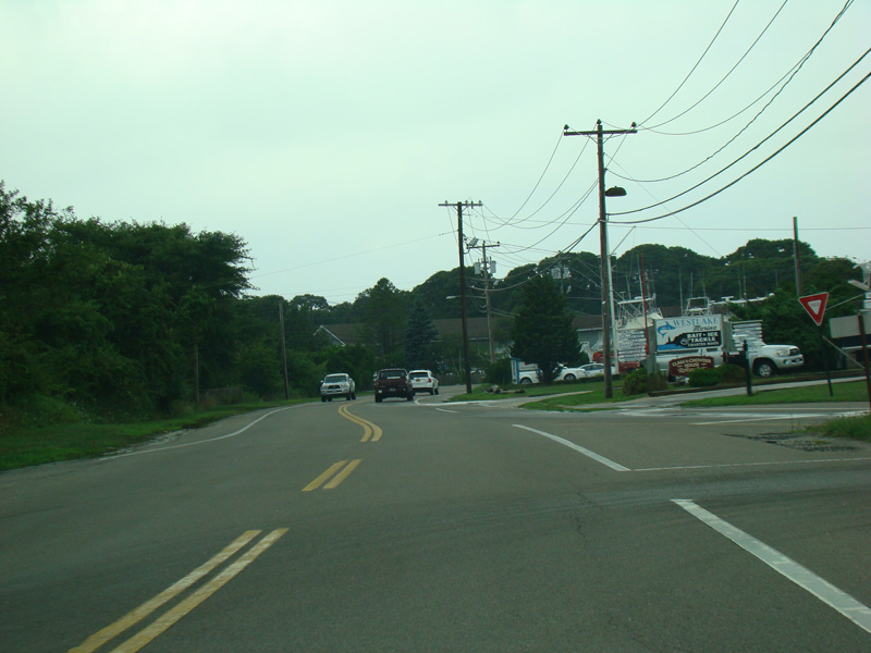 West Lake Drive begins at Montauk Highway (NY 27) in Montauk and runs north as a two-lane undivided road. Montauk Downs State Park is to the left along this section. Lake Montauk is to the right, but it is not visible from the road.