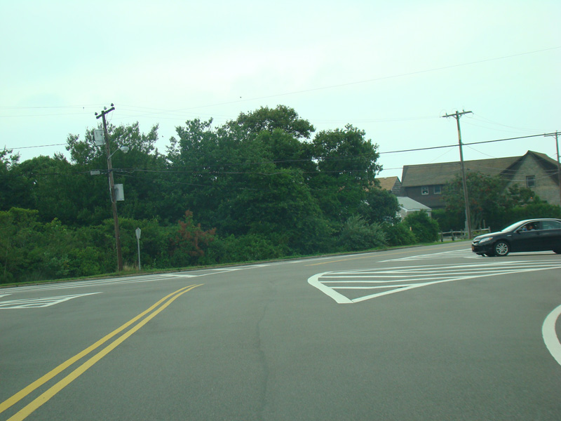 West Lake Drive curves back to the south here. The parking lot for Montauk Harbor is straight ahead.