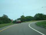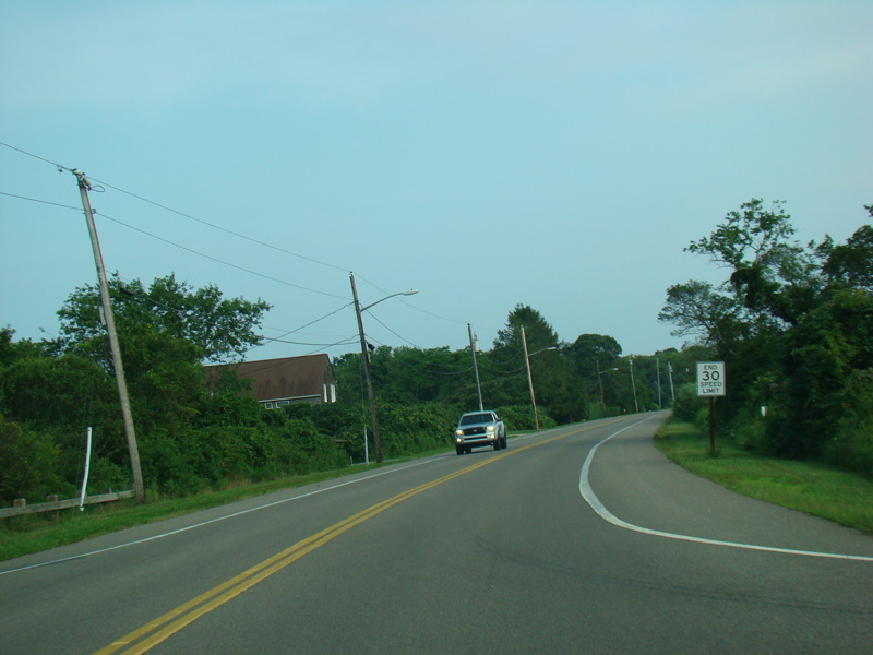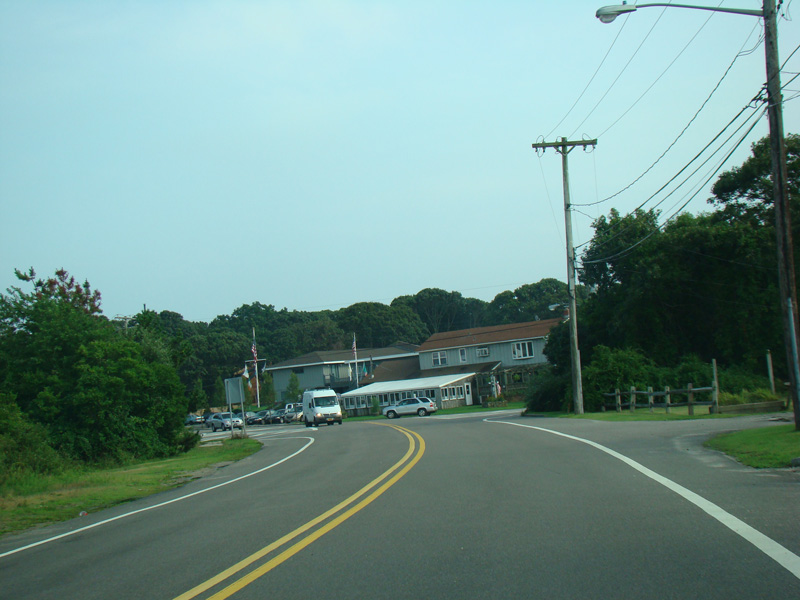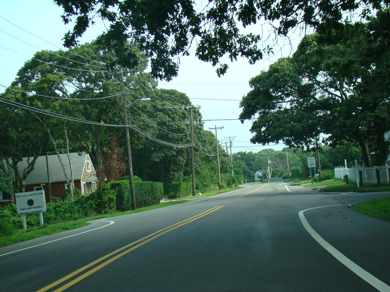 West Lake Drive ends at Montauk Highway (NY 27). Turn left to go east or turn right to west. There is no route signage for either NY 27 or CR 77 at the southern terminus.