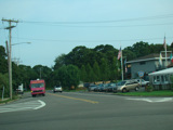 The northernmost portion of West Lake Drive is a loop at Montauk Harbor. Block Island Sound is to the right.