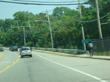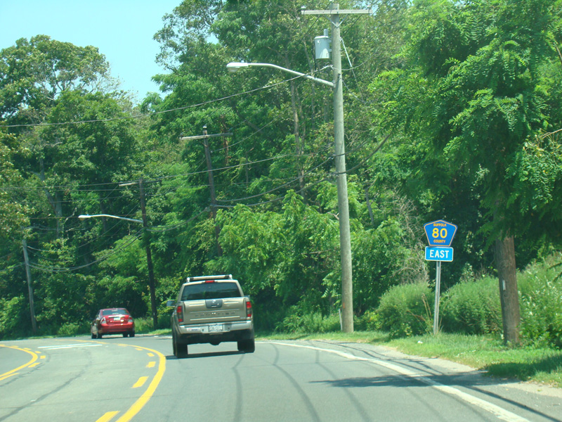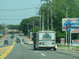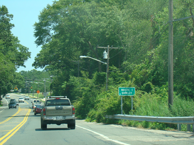 It used to be possible to turn left to go north on the William Floyd Parkway (CR 46). Left turns are now prohibited, and motorists wishing to go north must use the adjoining streets as jughandles.