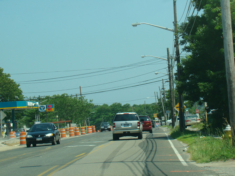 These pictures show Montauk Highway in the area just east of the William Floyd Parkway (CR 46) as it appeared while construction work was in progress.