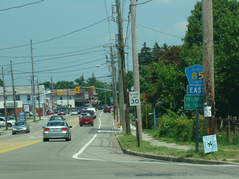 These signs were found at the eastern terminus of CR 85 in Patchogue. They have been replaced.