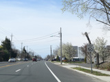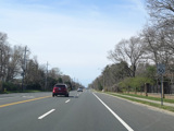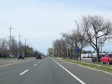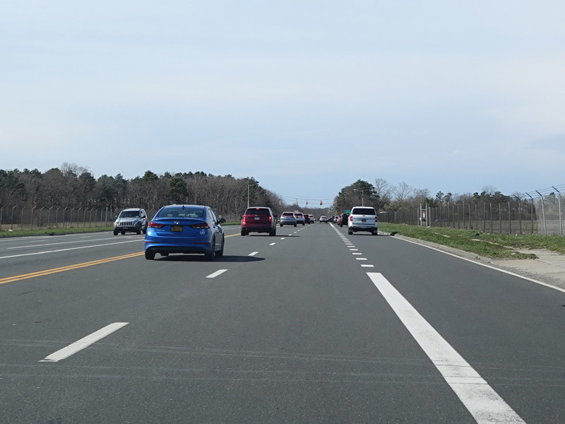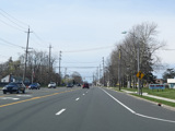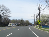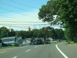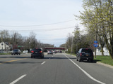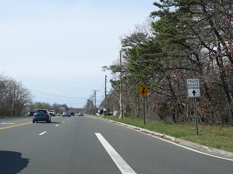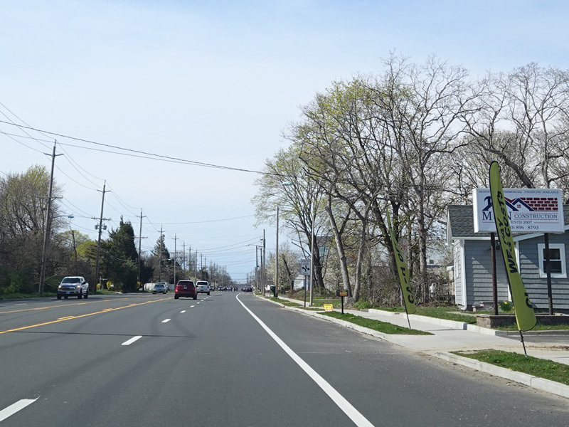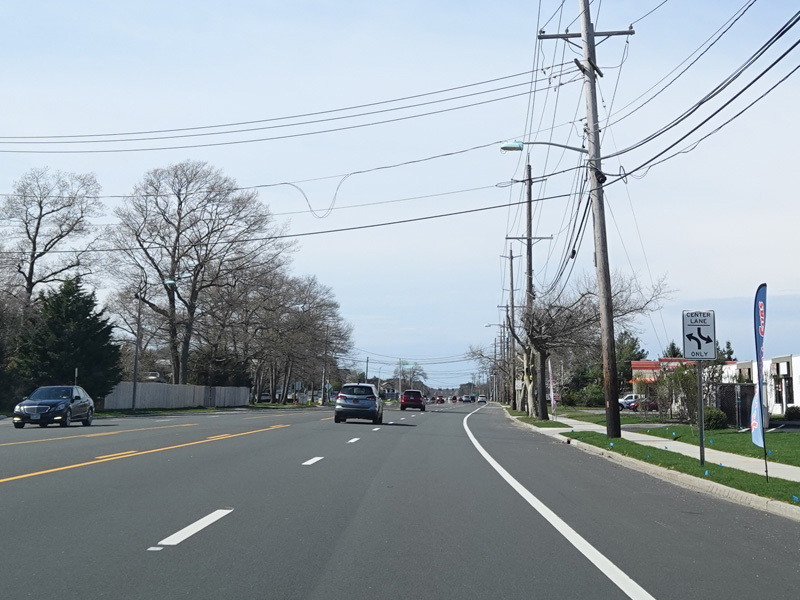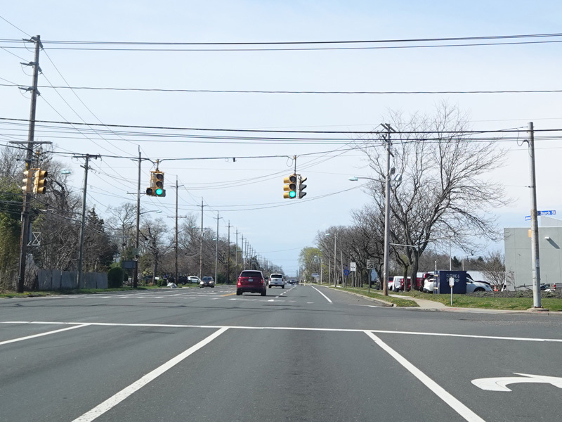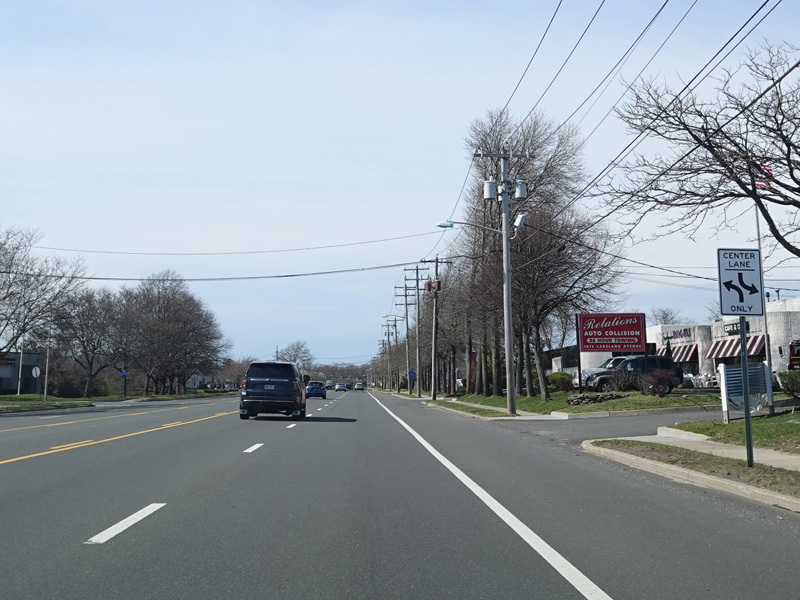Rosevale Avenue ends at Smithtown Boulevard (CR 16). Use the left lane to go west or the right lane to go east. Use the center lane for Gibbs Pond Road.
