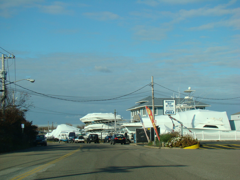 Bergen Avenue begins at Great South Bay and runs north as a two-lane undivided road.