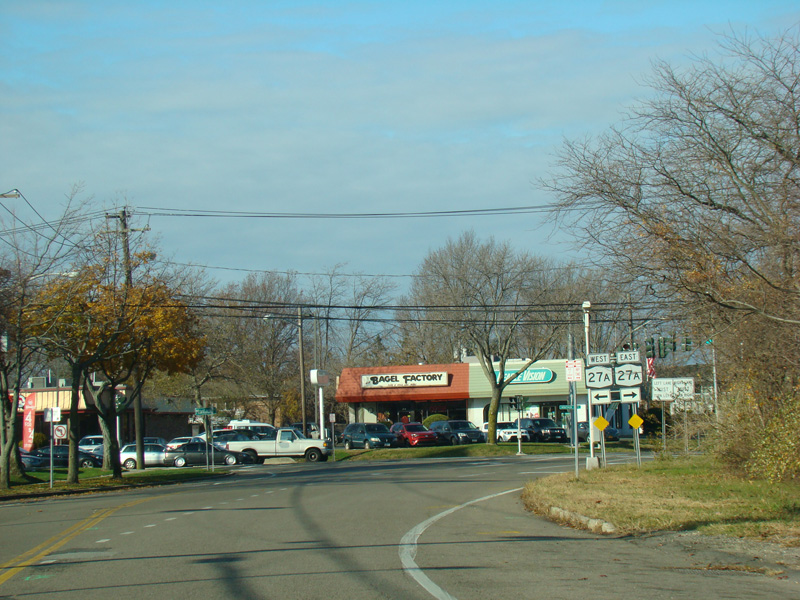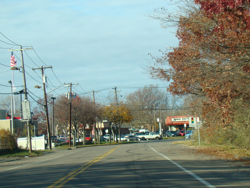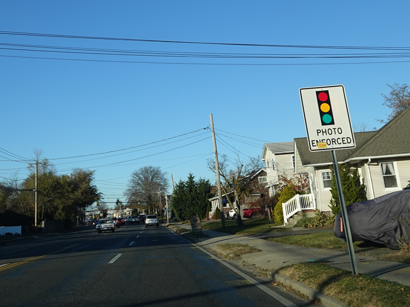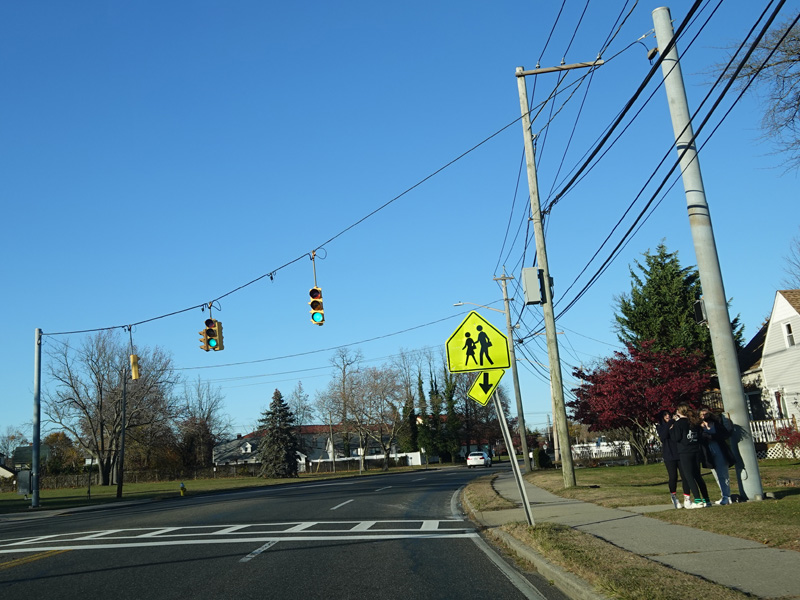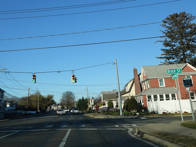 Great East Neck Road passes under the Babylon Branch and the Central Branch of the Long Island Rail Road. The two branches merge just east of here. Right before the overpasses, Railroad Avenue (CR 12) begins on the left at a traffic light.