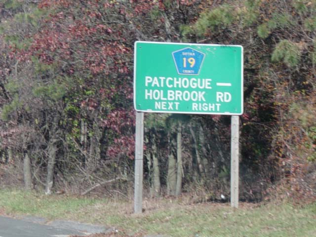 This sign with all capital letters was found on Nicolls Road at its northern terminus. It has since been replaced with a new mixed-case sign.