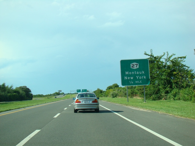 This sign used to mark the interchange with Sunrise Highway (NY 27). It has been replaced.