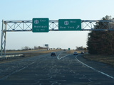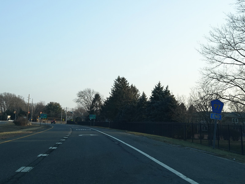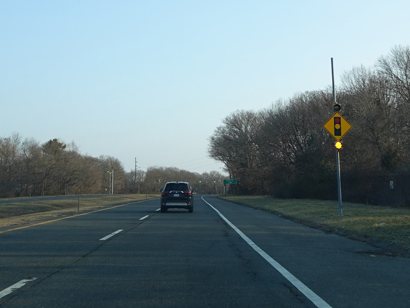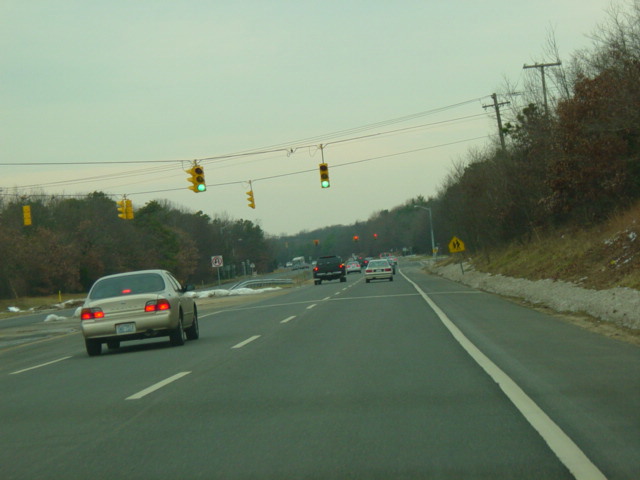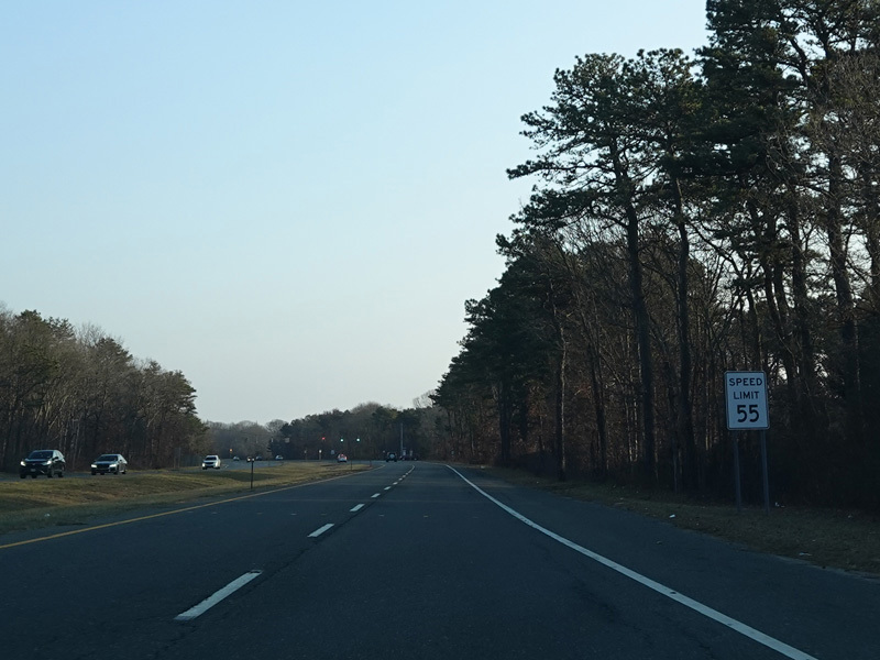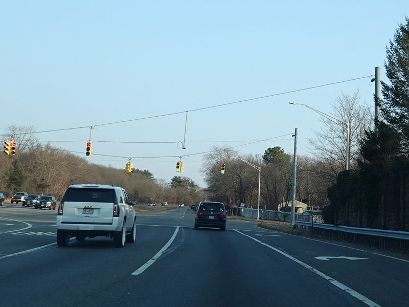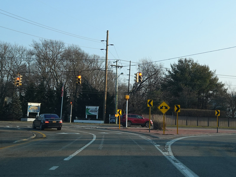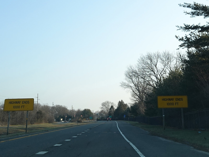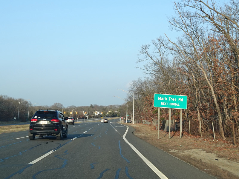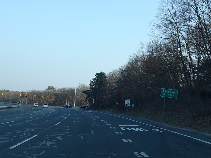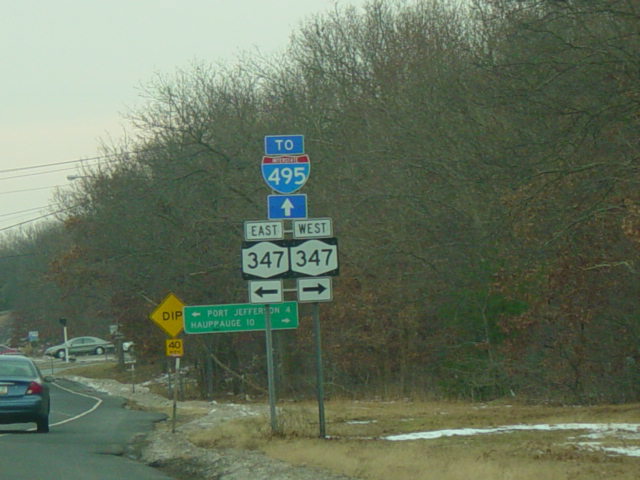 There is a traffic light at Nesconset Highway (NY 347). Turn left to go east or right to go west. There are plans to upgrade this intersection to a grade-separated interchange.