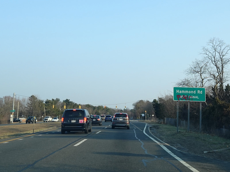 Nicolls Road continues to the south. There are traffic lights at Pond Path, Mark Tree Road, Wireless Road, Hawkins Road, and Hammond Road.