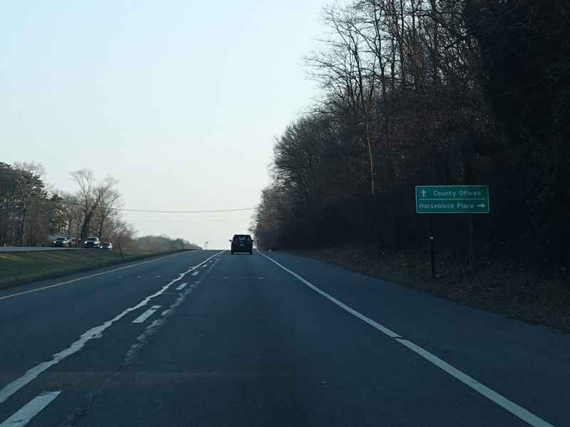 From this point south, Nicolls Road is almost an expressway, with most intersections being grade-separate interchanges. There is an exit for Horseblock Place.