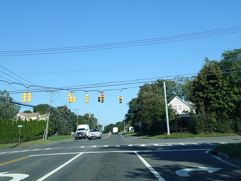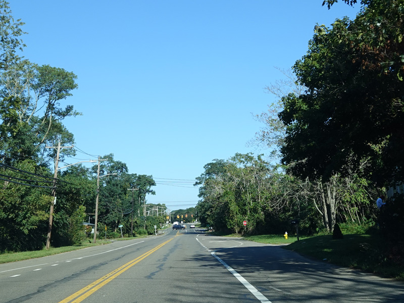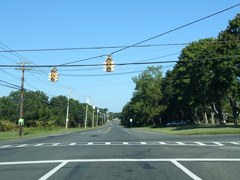Frowein Road ends at a traffic light at Montauk Highway (CR 80). Turn left to go east or turn right to go west.