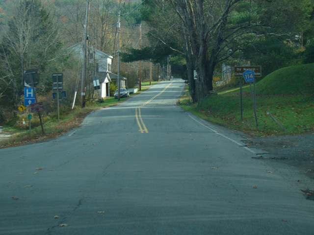CR 114 is an extension of Cochecton Turnpike (PA 371) into New York. It begins at a bridge over the Delaware River between the states and runs east for about half a mile to NY 97. It is multiplexed with NY 97 for one block and then splits off. It runs for a few miles east to end at the eastern end of the NY 17B/NY 52 multiplex. The section of CR 114 between the river and NY 97 is known as Newburgh Turnpike, while the remainder has no name and is known solely by its number.