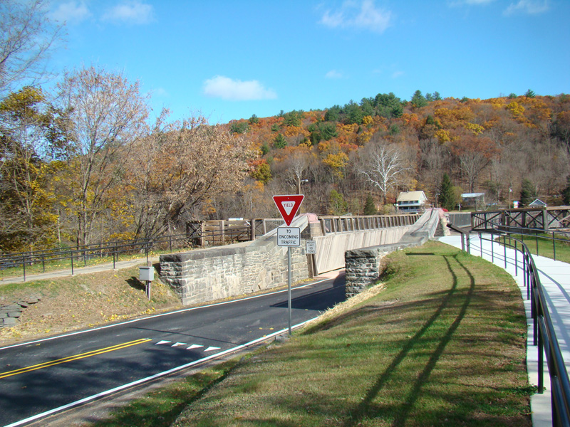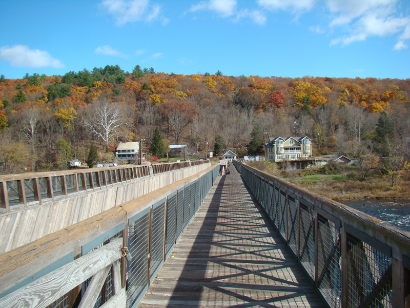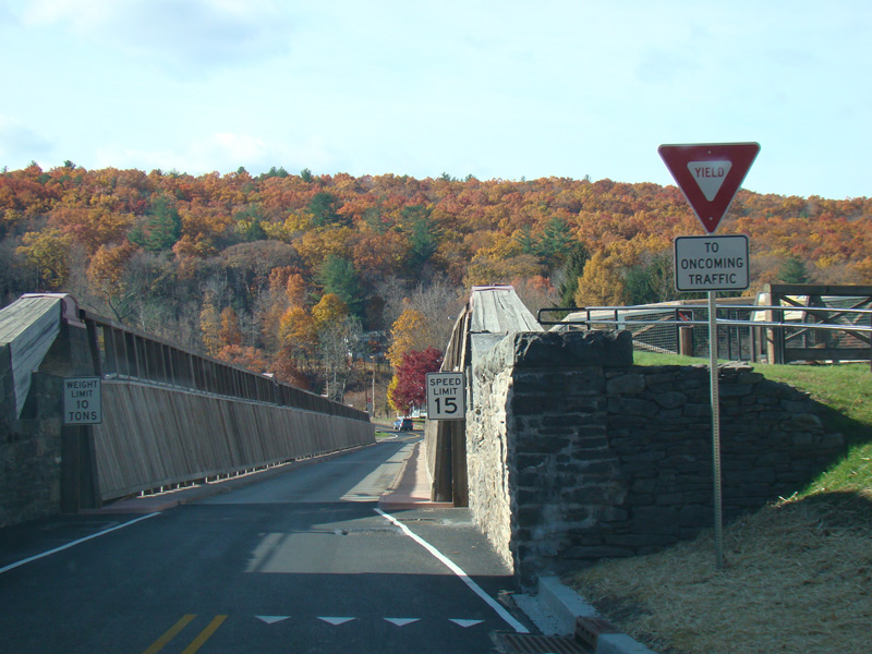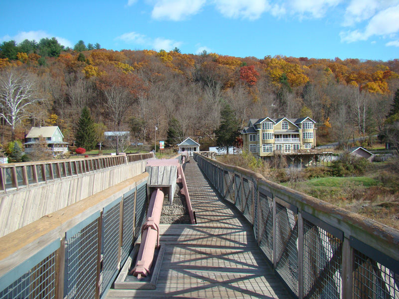These pictures show the Roebling Bridge heading from New York to Pennsylvania.