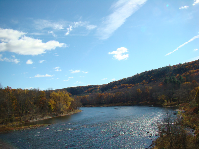 These pictures show the Delaware River as observed from crossing the Roebling Bridge.