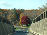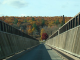 These pictures show the Roebling Bridge as observed from the pedestrian walkway heading from Pennsylvania to New York.