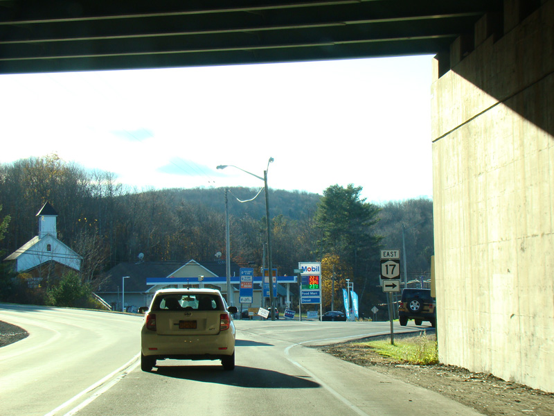 Harris Road runs south through the Town of Liberty as a two-lane undivided road. There is an interchange with the Quickway (NY 17/Future I-86). At the Thompson-Liberty town line, it becomes Old Route 17 (CR 174).