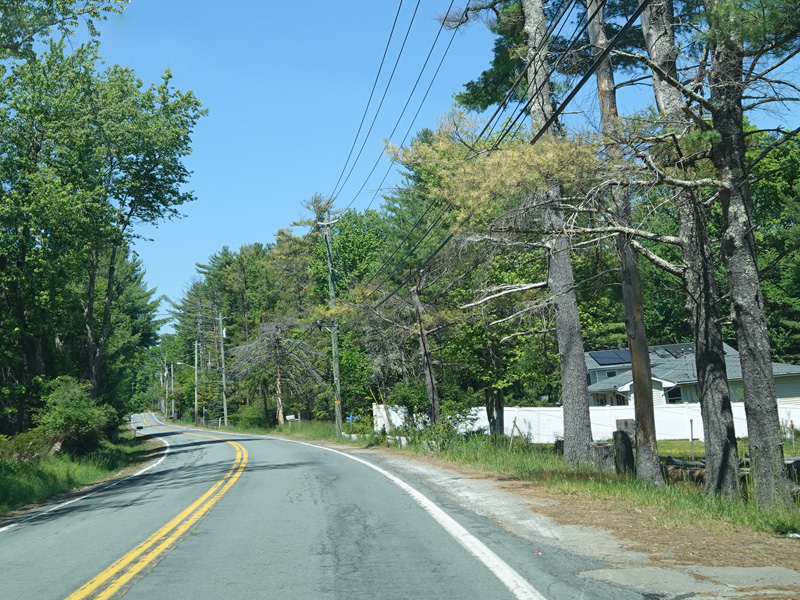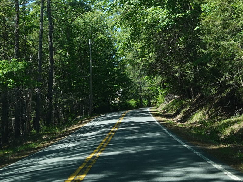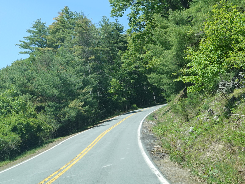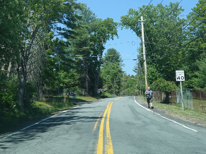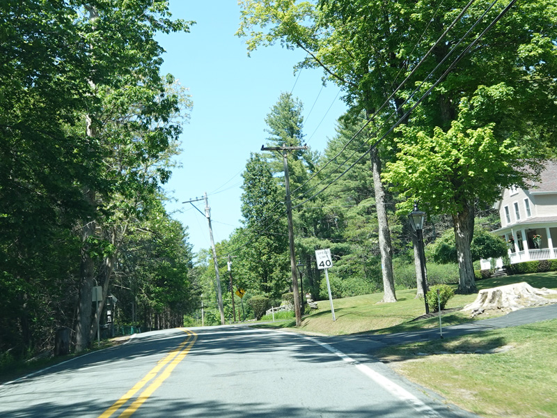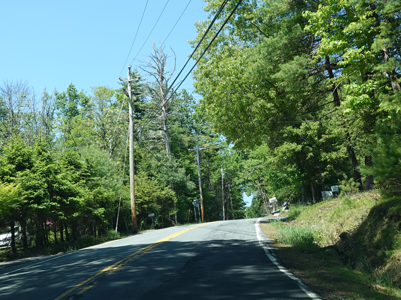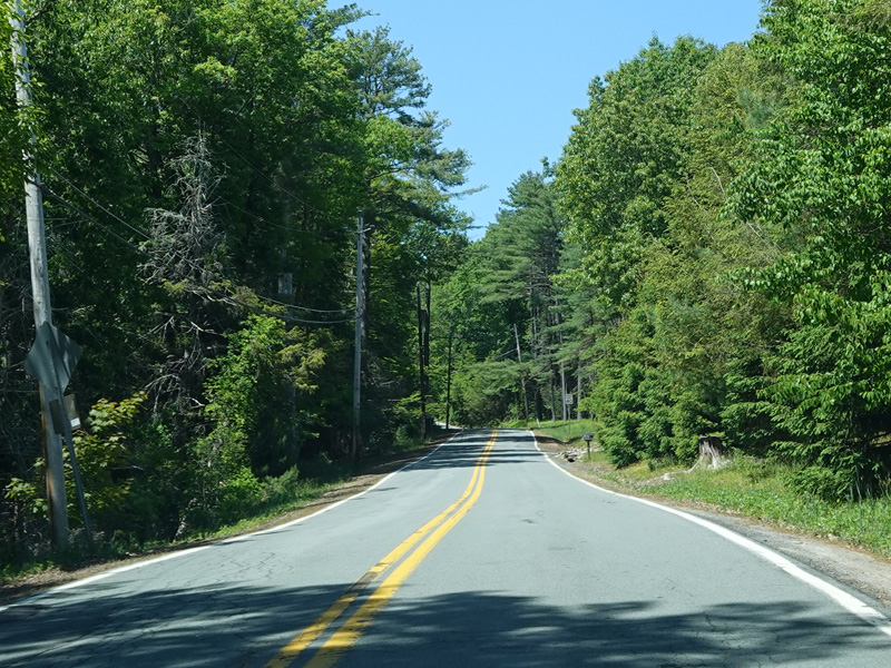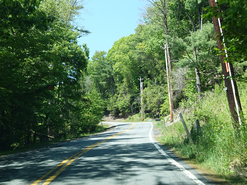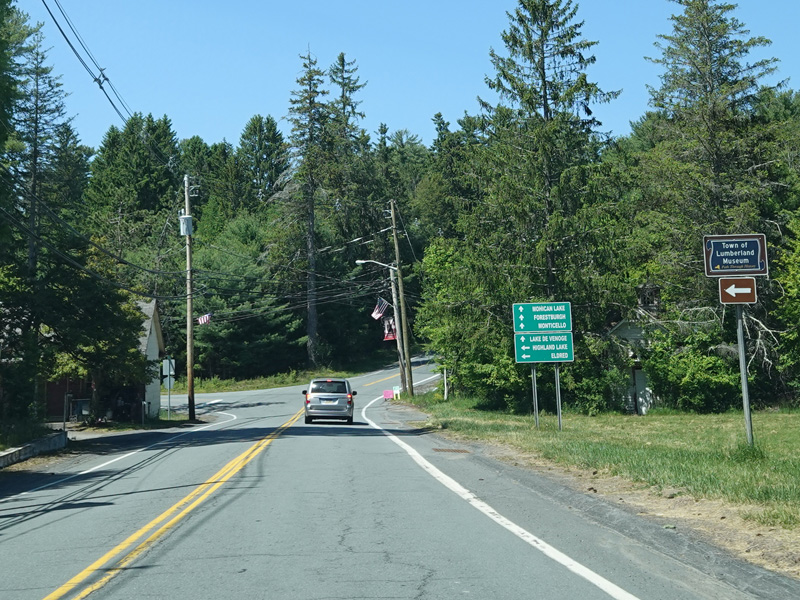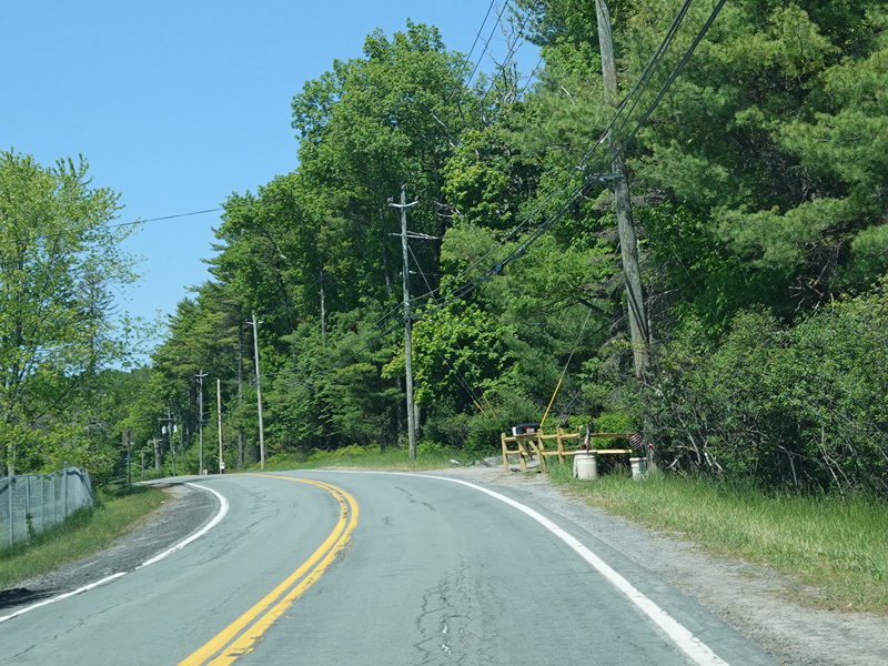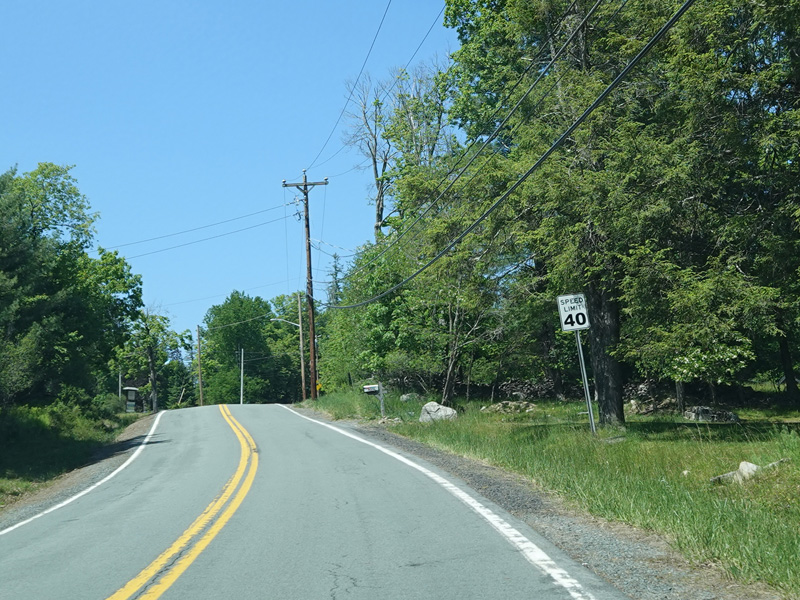 High Road ends here. Forestburgh Road (CR 42) is straight ahead. Proctor Road (CR 32) begins on the left.