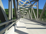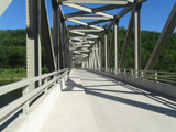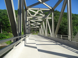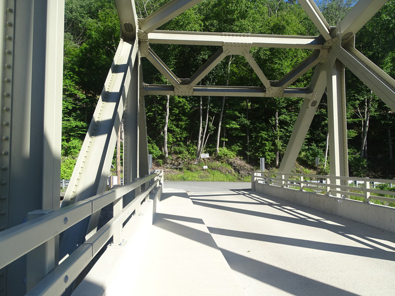 The Pond Eddy Bridge is a one-lane bridge over the Delaware River to Pennsylvania.