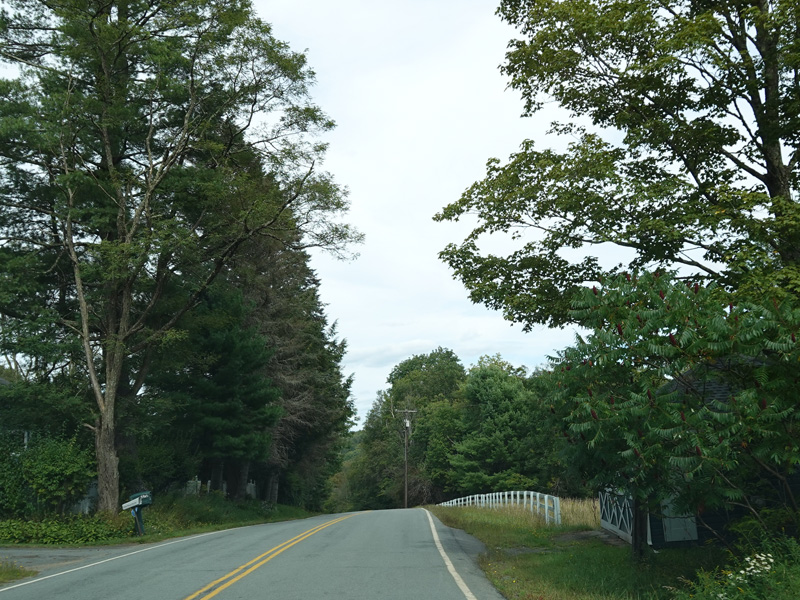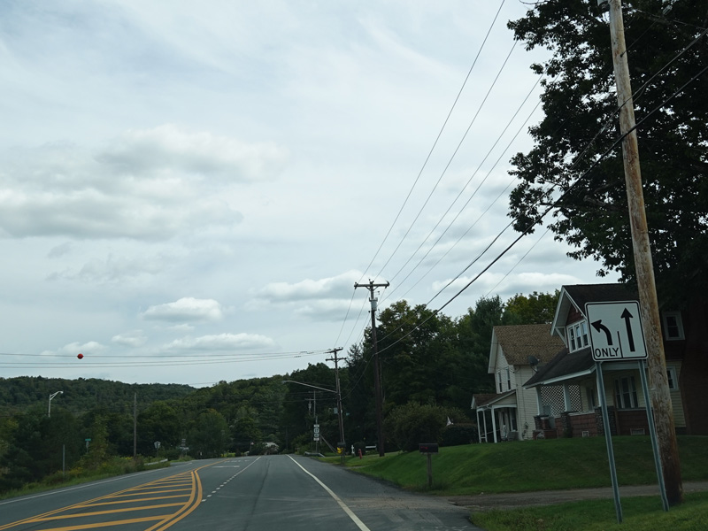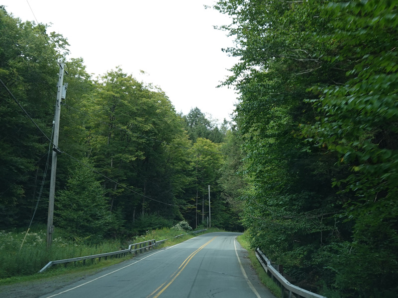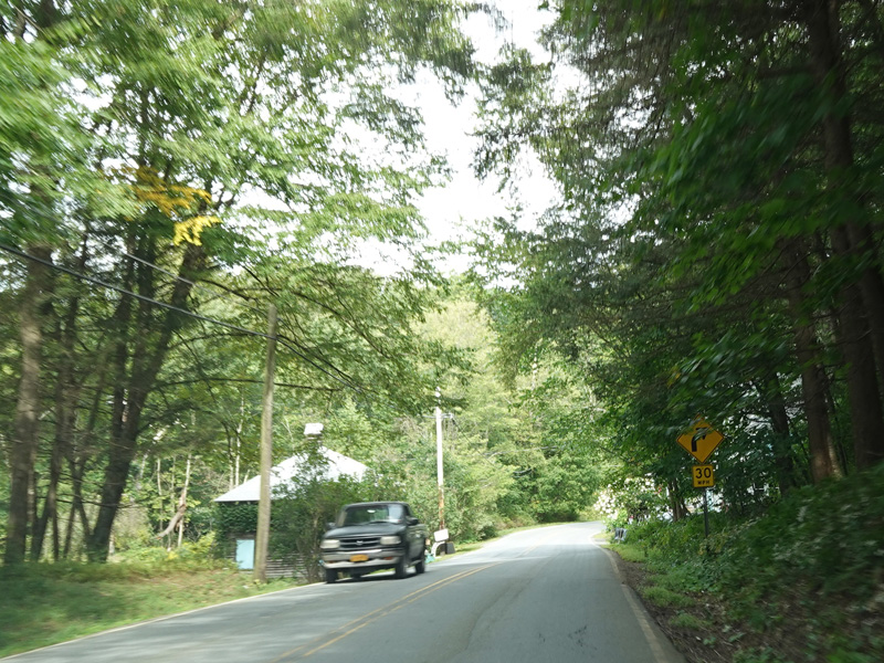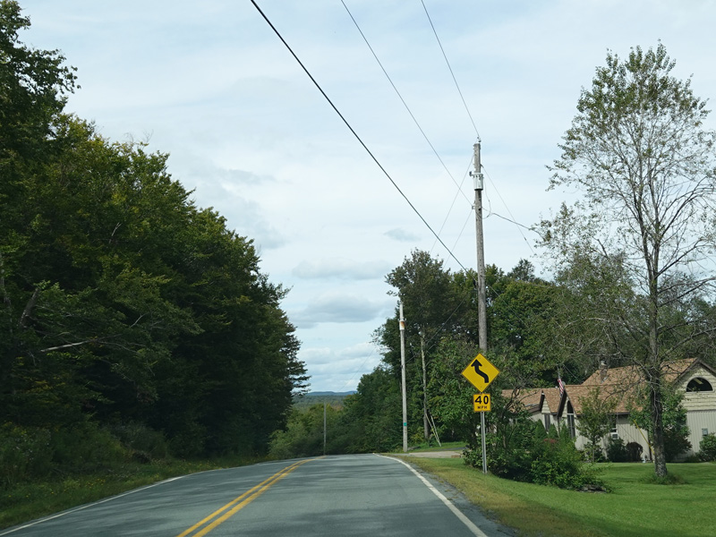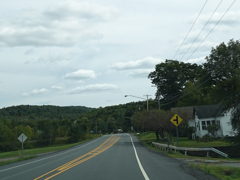 Tennanah Lake Road curves to the east and changes name to become Riverside Drive.