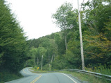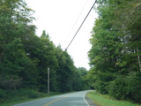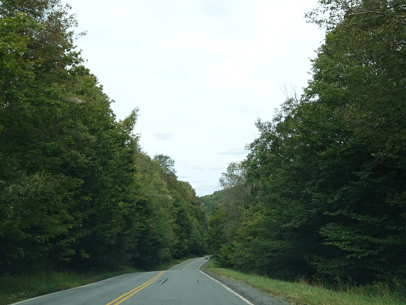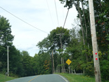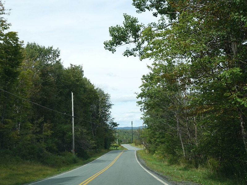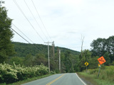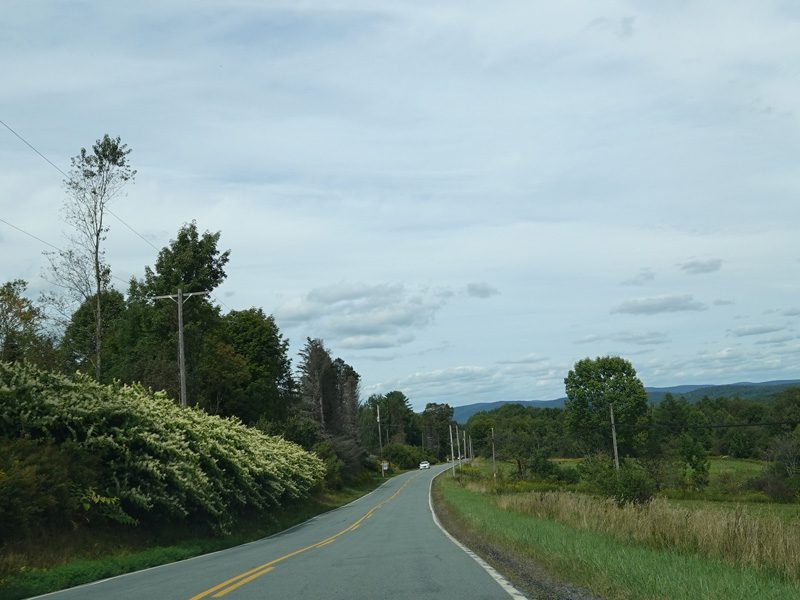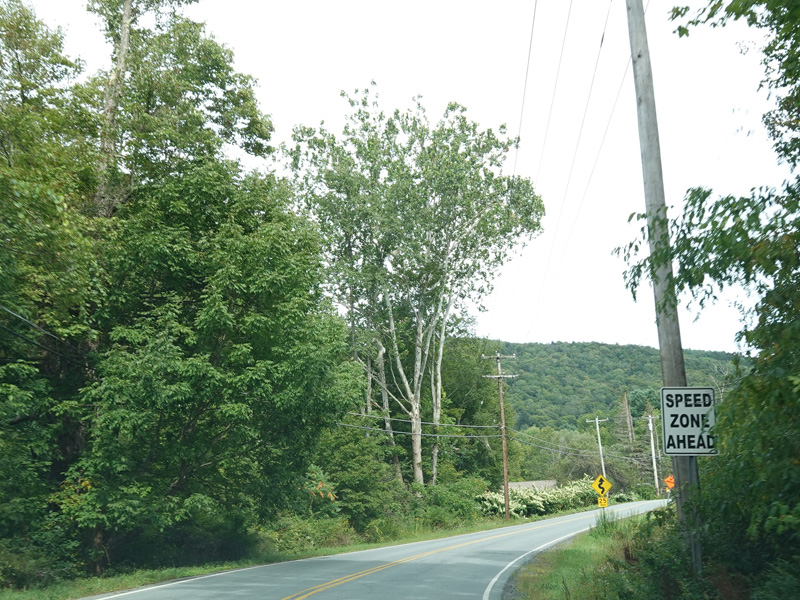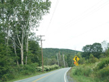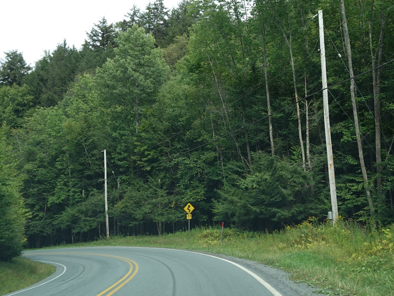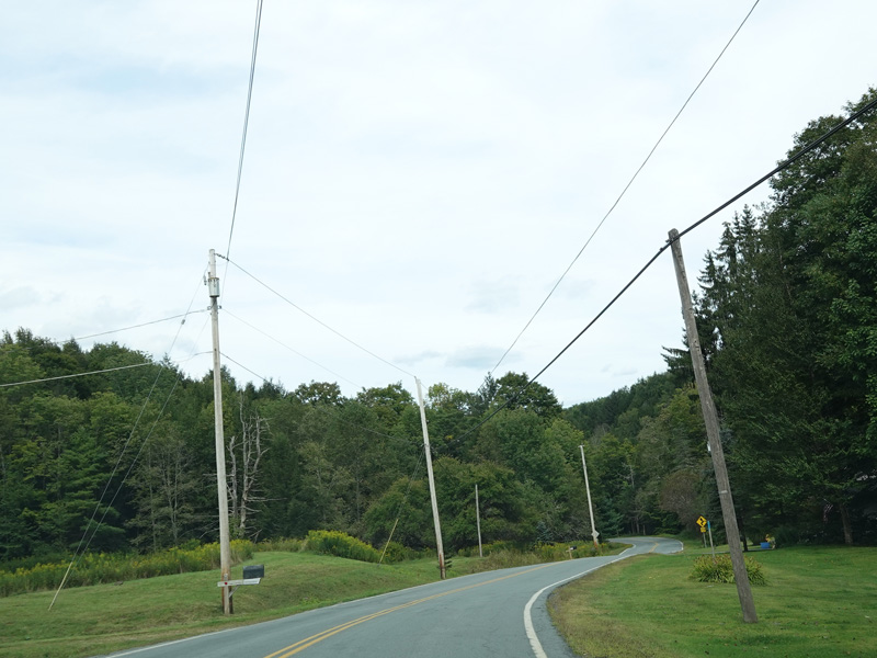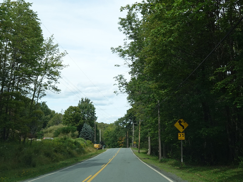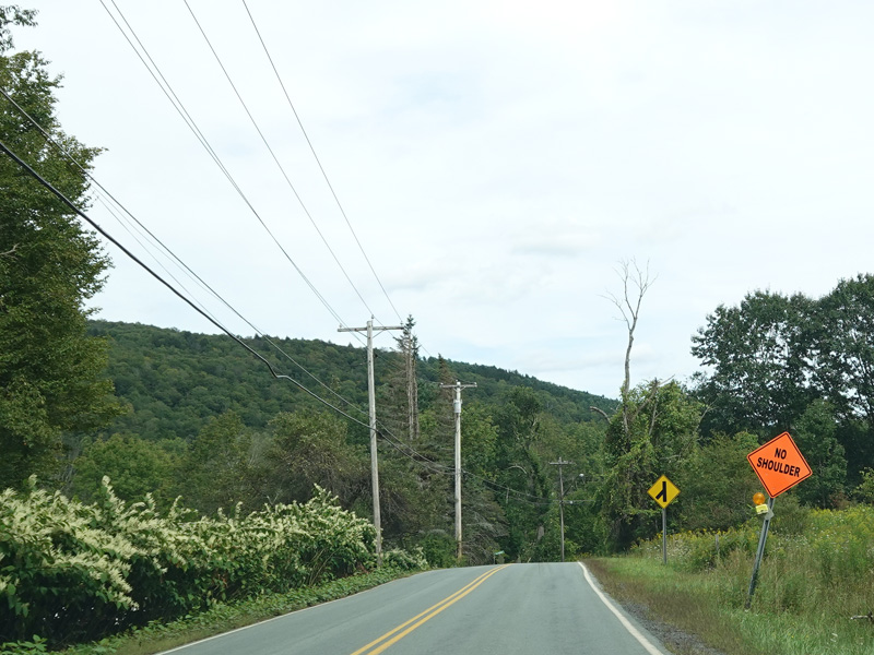 Tennanah Lake Road changes designation from CR 96 to CR 92 at Hankins Road (CR 93). It runs north as a two-lane undivided road. The mountains are visible in the distance.