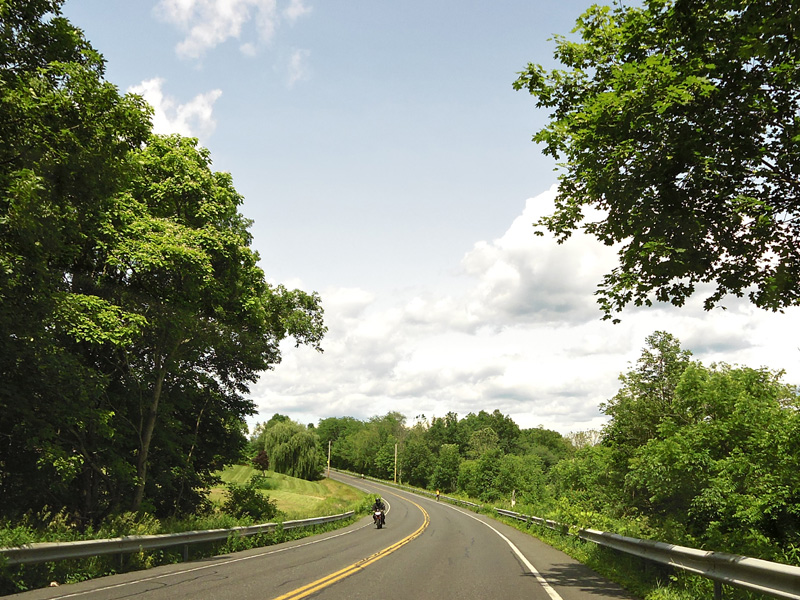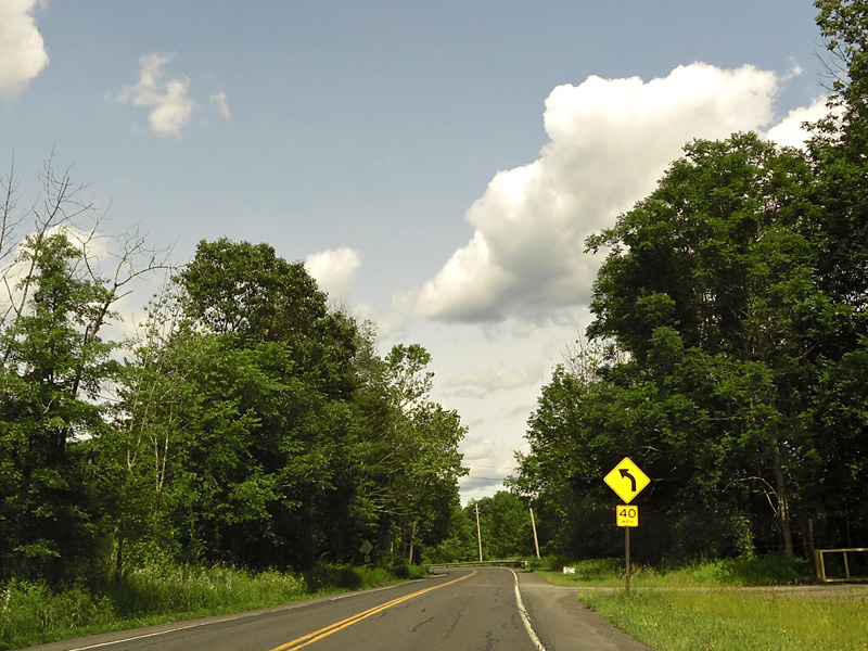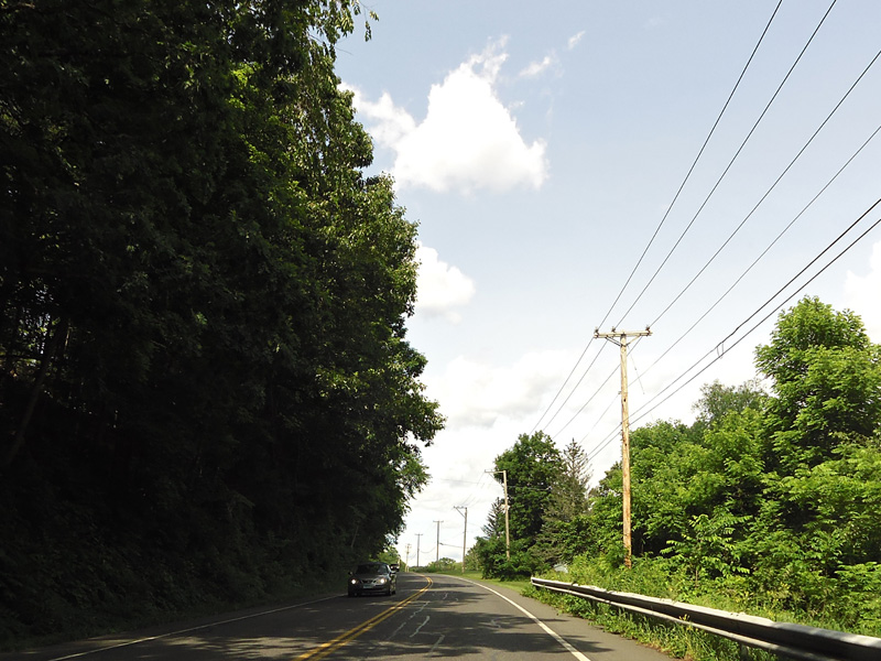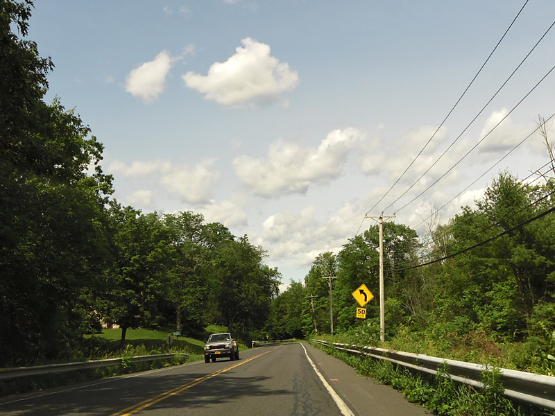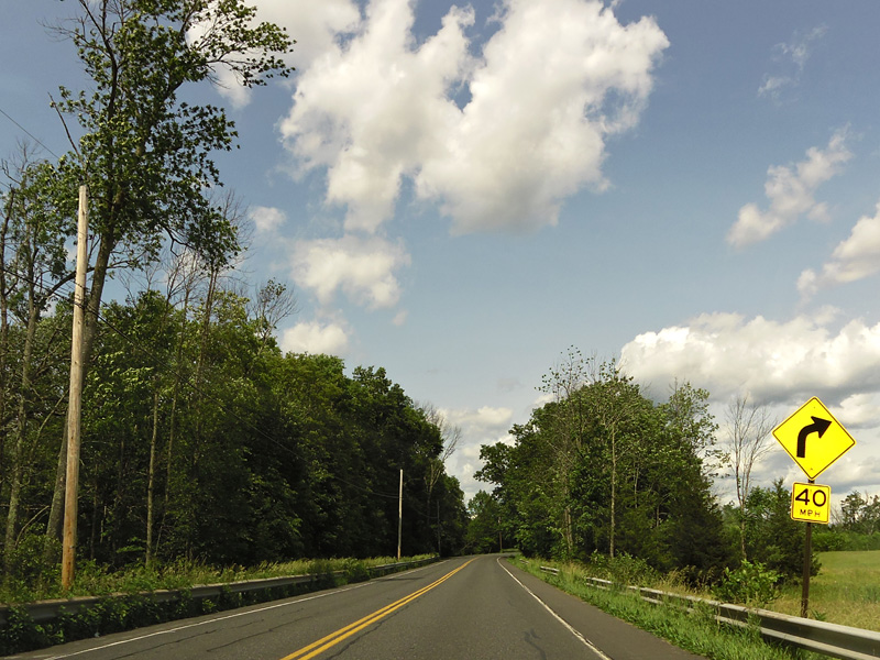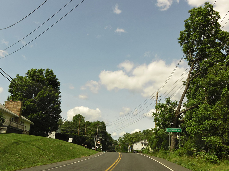 There is a traffic light at NY 213. Turn right to go east or left to go west. The Shawangunk Mountains Scenic Byway splits off to the right here.