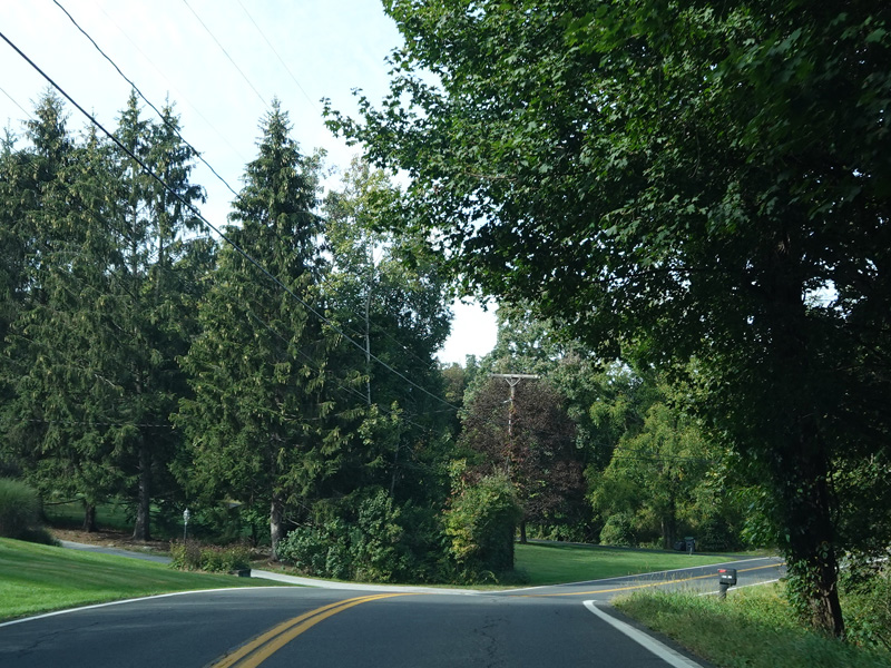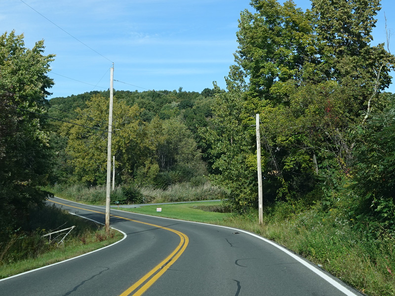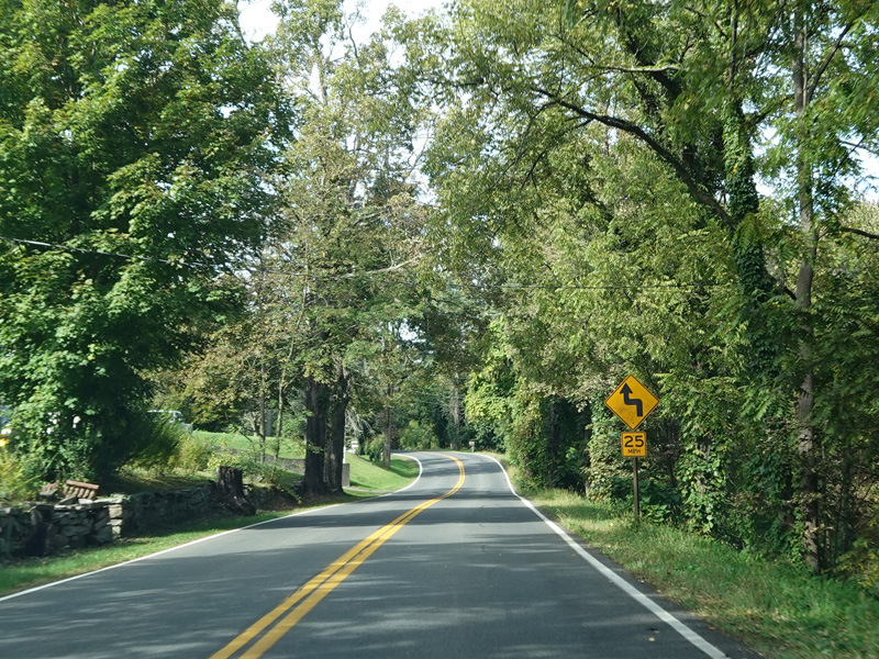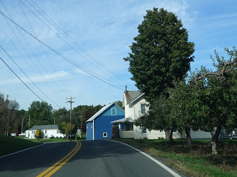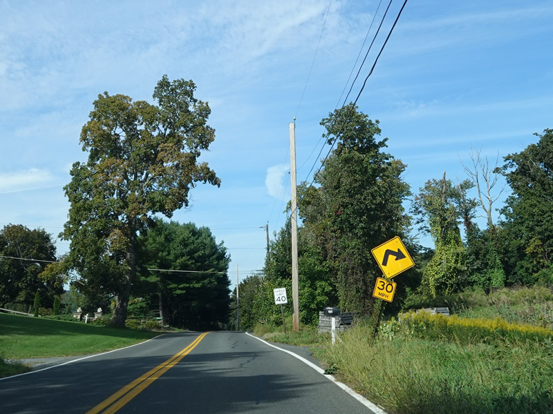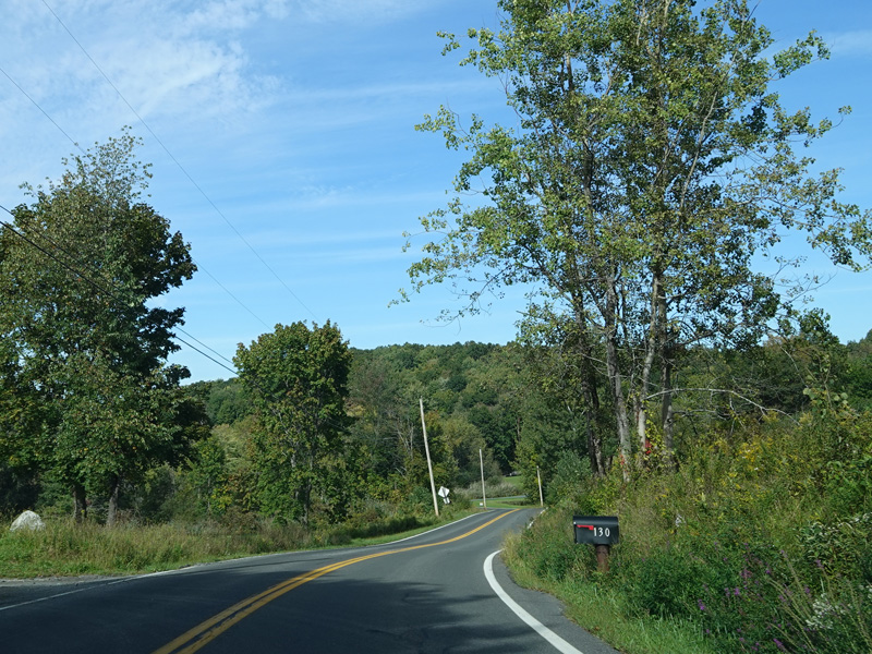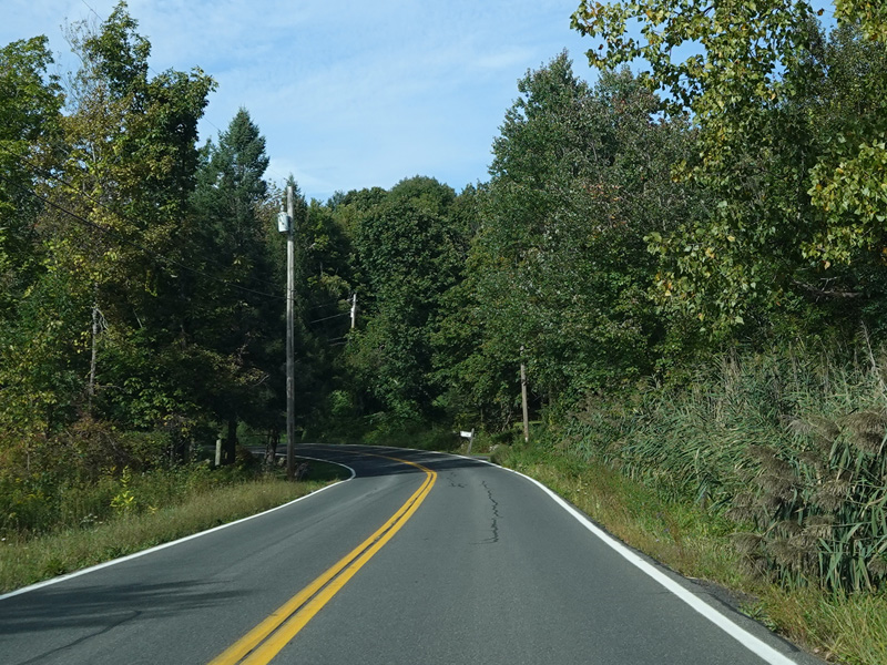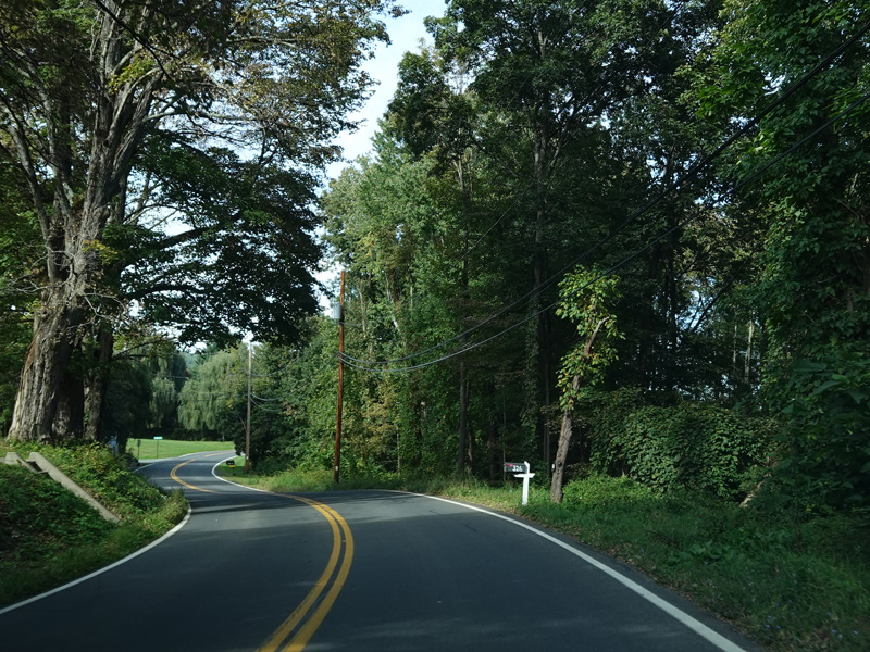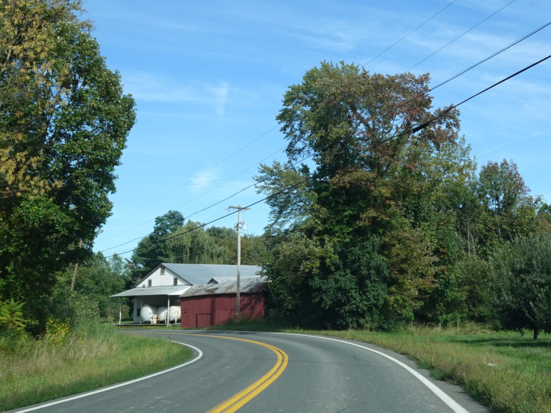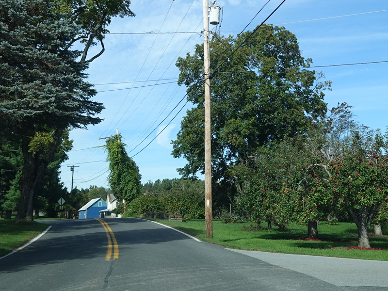 Milton Cross Road runs north as a two-lane undivided road, eventually changing names to become Orchard Road. As the name suggests, there are a number of apple orchards along this stretch.