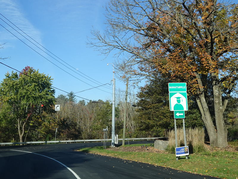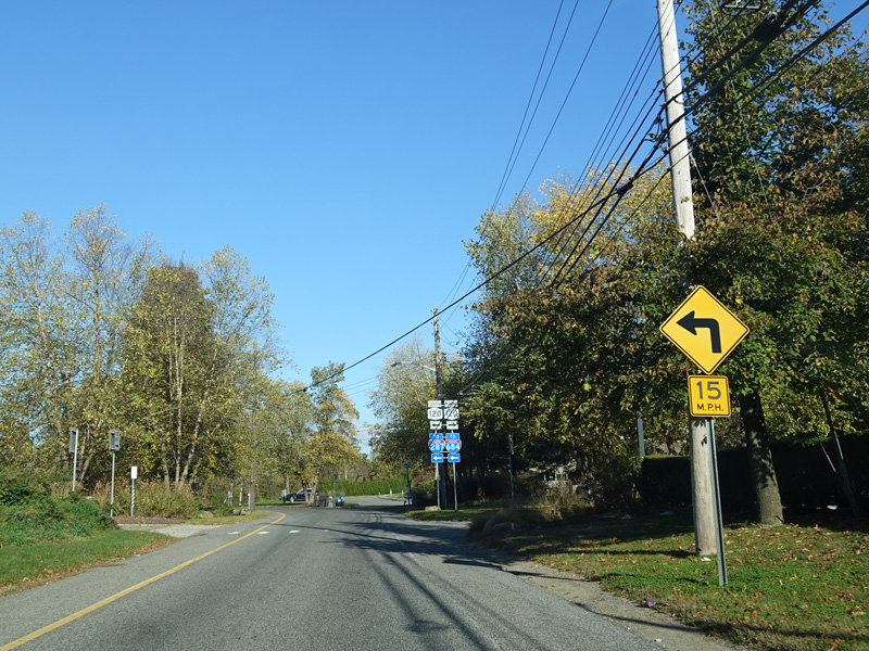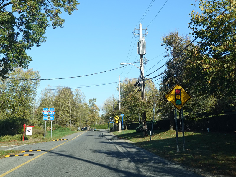 New King Street begins at Airport Road (CR 135) at the point where northbound traffic is forced to turn off. It runs north for a short distance to end at a traffic light at Purchase Street (NY 120). Turn right to go north or left to go south.