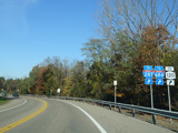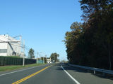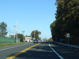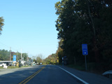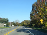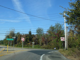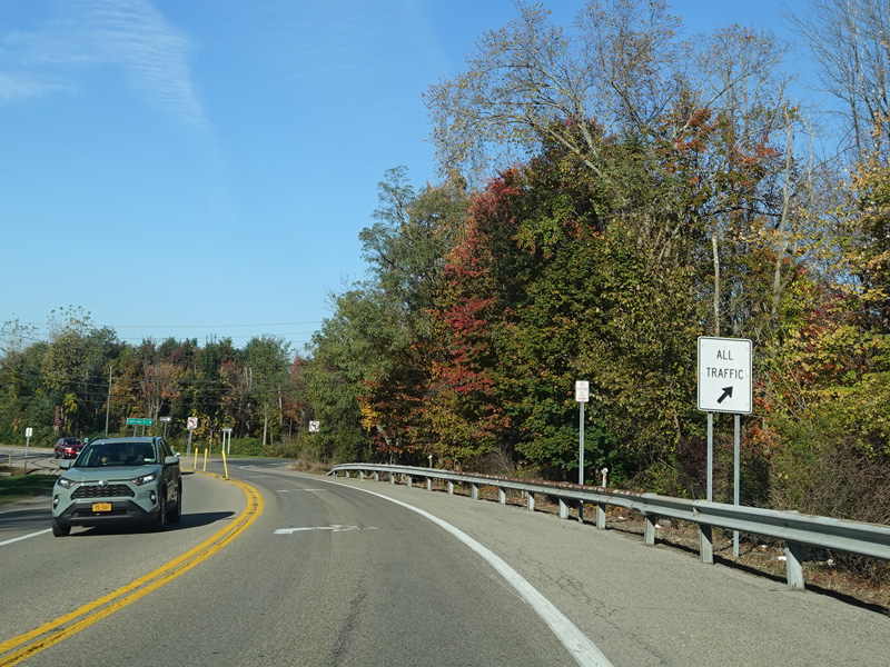 Airport Road curves to the west and becomes a southbound one-way street. Northbound traffic is forced to turn right onto New King Street.
