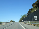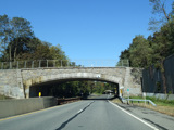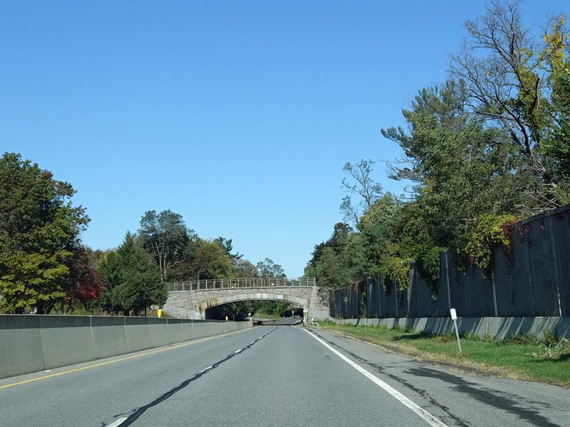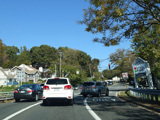 The parkway ends at North Broadway (NY 22). Continue straight ahead to go north. The southbound direction is to the left, but left turns are prohibited here.