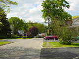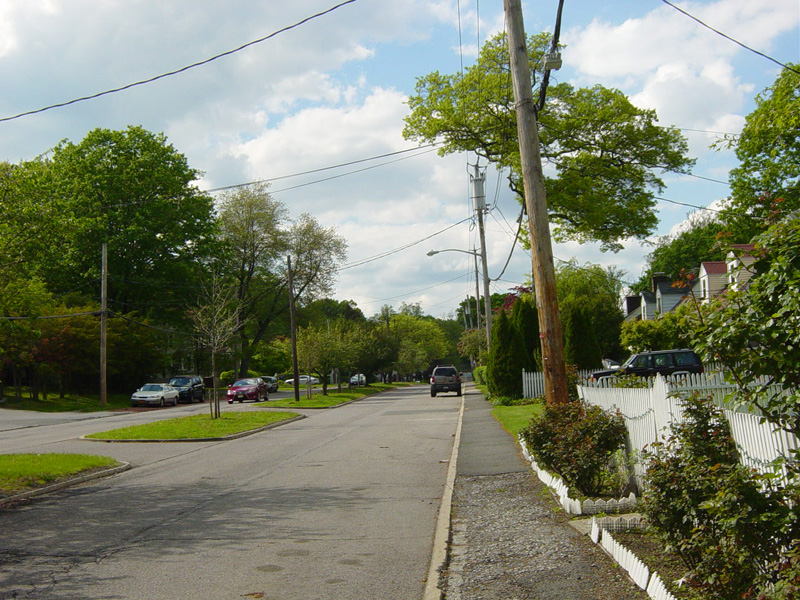 Farragut Avenue becomes a county route at the Farragut Parkway. The first section is a two-lane divided road with a grass median.