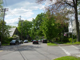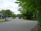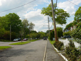 After a few blocks, the median ends. Farragut Avenue continues to the northwest as a two-lane undivided road.