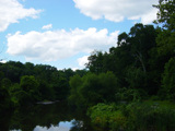 This picture shows the Bronx River looking north as observed from the bridge on Harney Road.